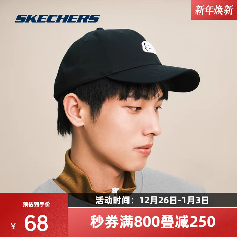 斯凯奇男女同款防晒帽遮阳帽运动刺绣鸭舌帽休闲情侣棒球帽