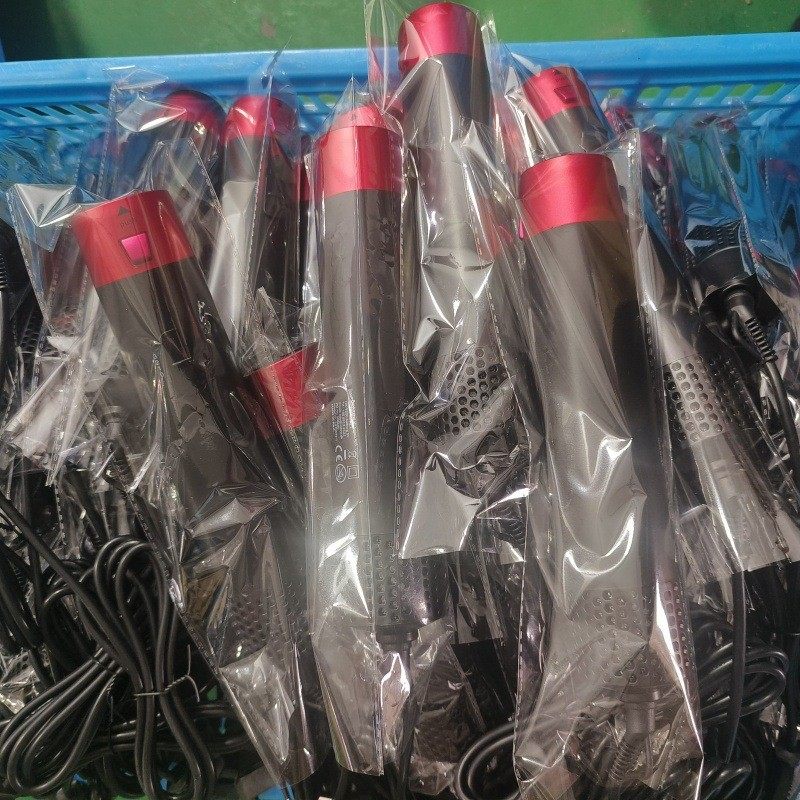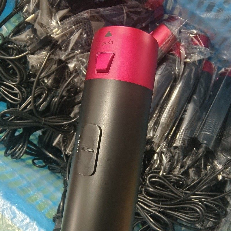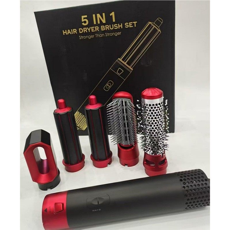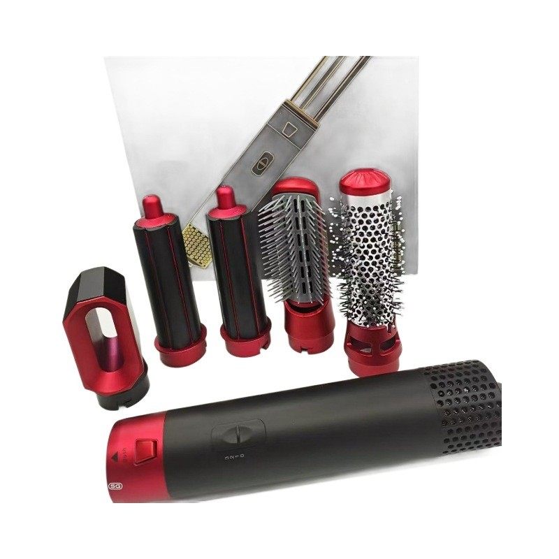 新款中国红五合一热风梳电动卷发棒干湿两用自动吸发直发梳吹风机