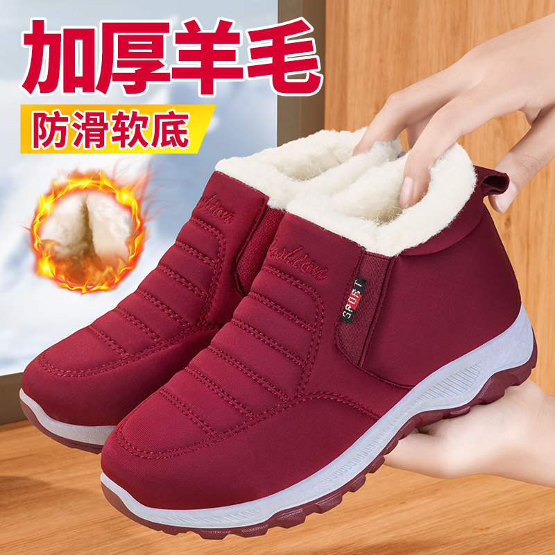 老北京棉鞋女冬加绒加厚羊毛保暖中老年妈妈鞋老人软底防滑雪地靴