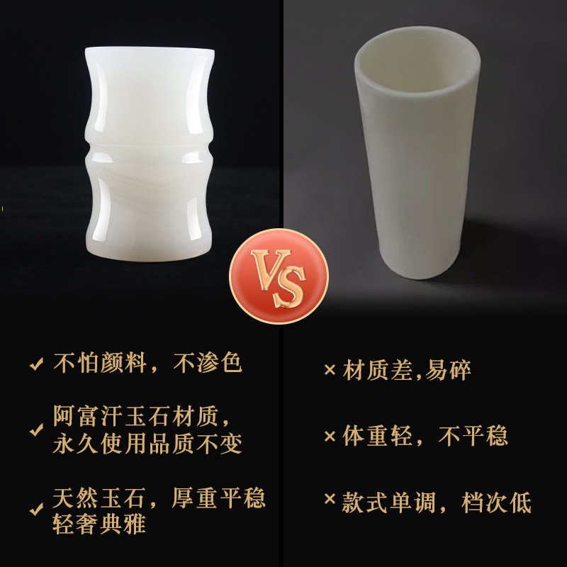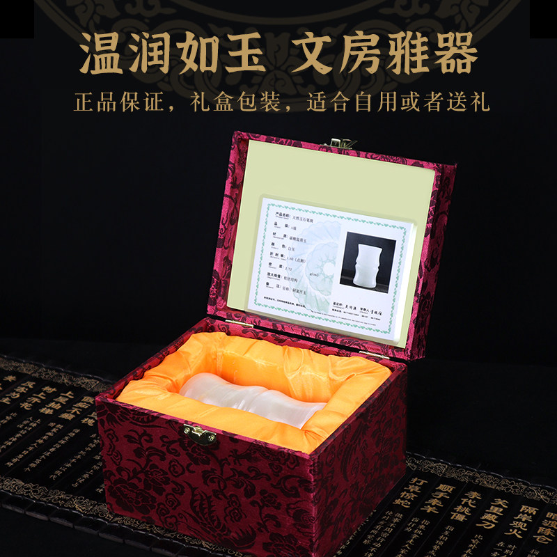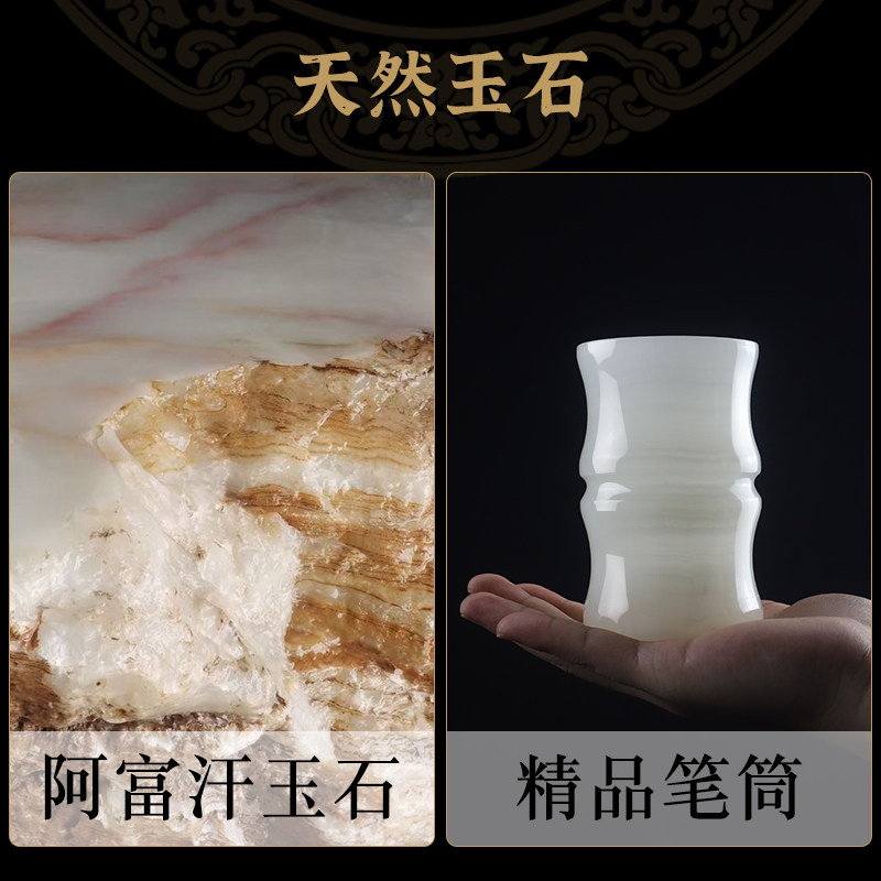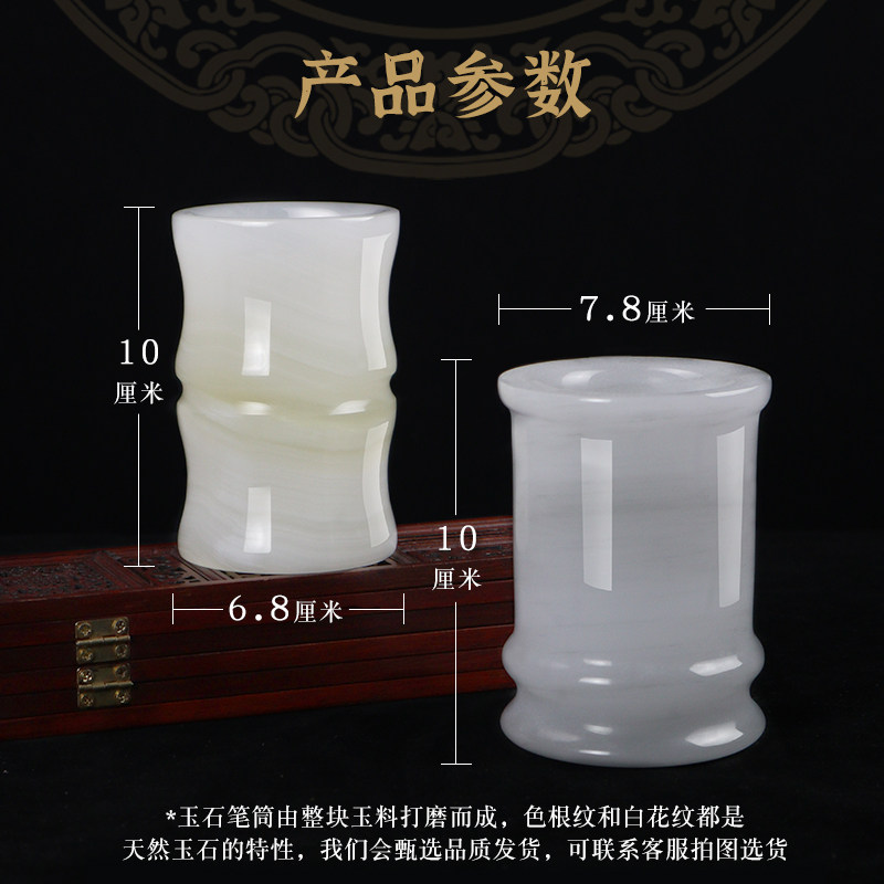 天然玉石笔筒轻奢办公室桌面文具用品收纳盒新中式禅意笔座摆件