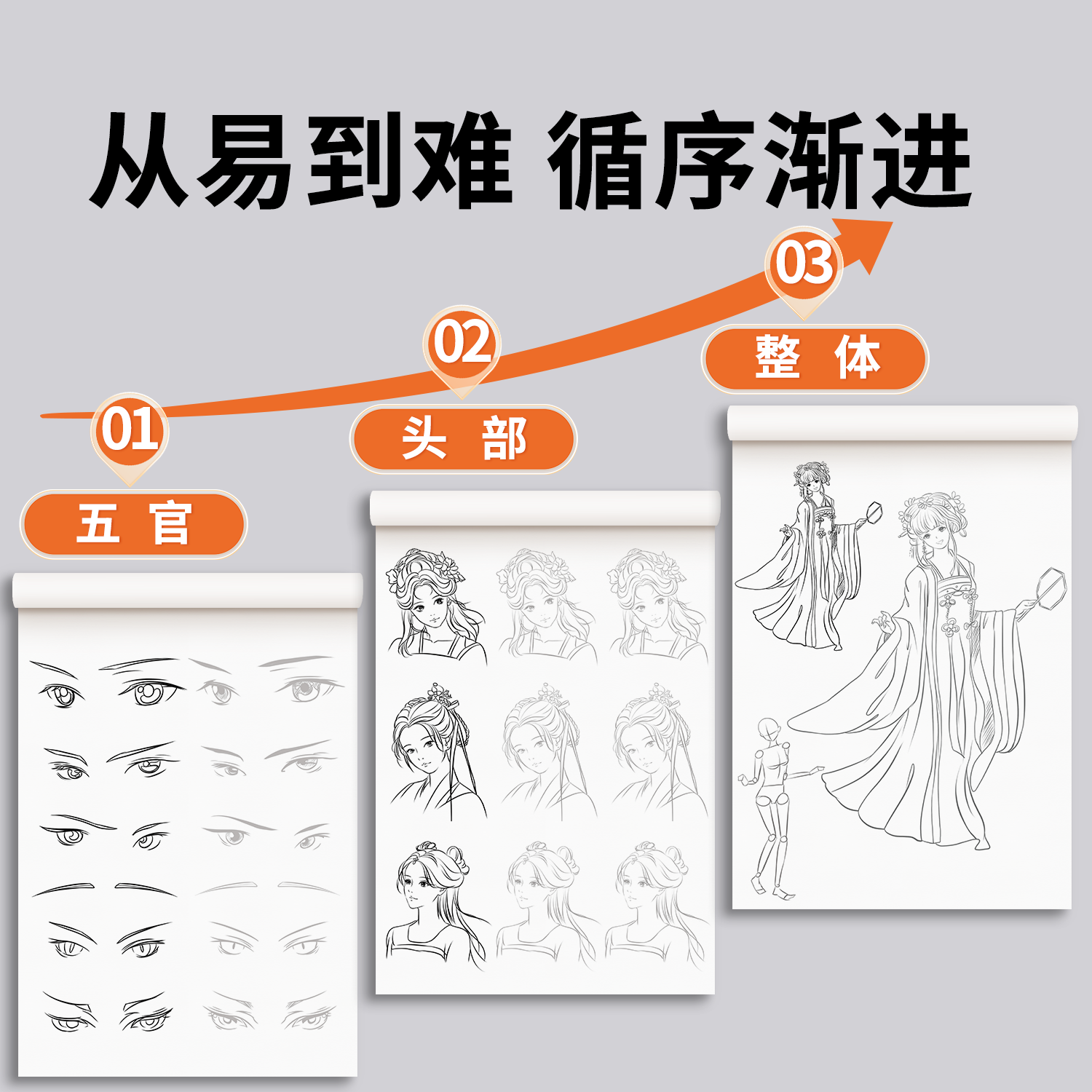 漫画入门手绘描摹本动漫人物美少女二次元线稿描绘画画本古风人物绘画儿童零基础自学教程素描临摹卡通画册