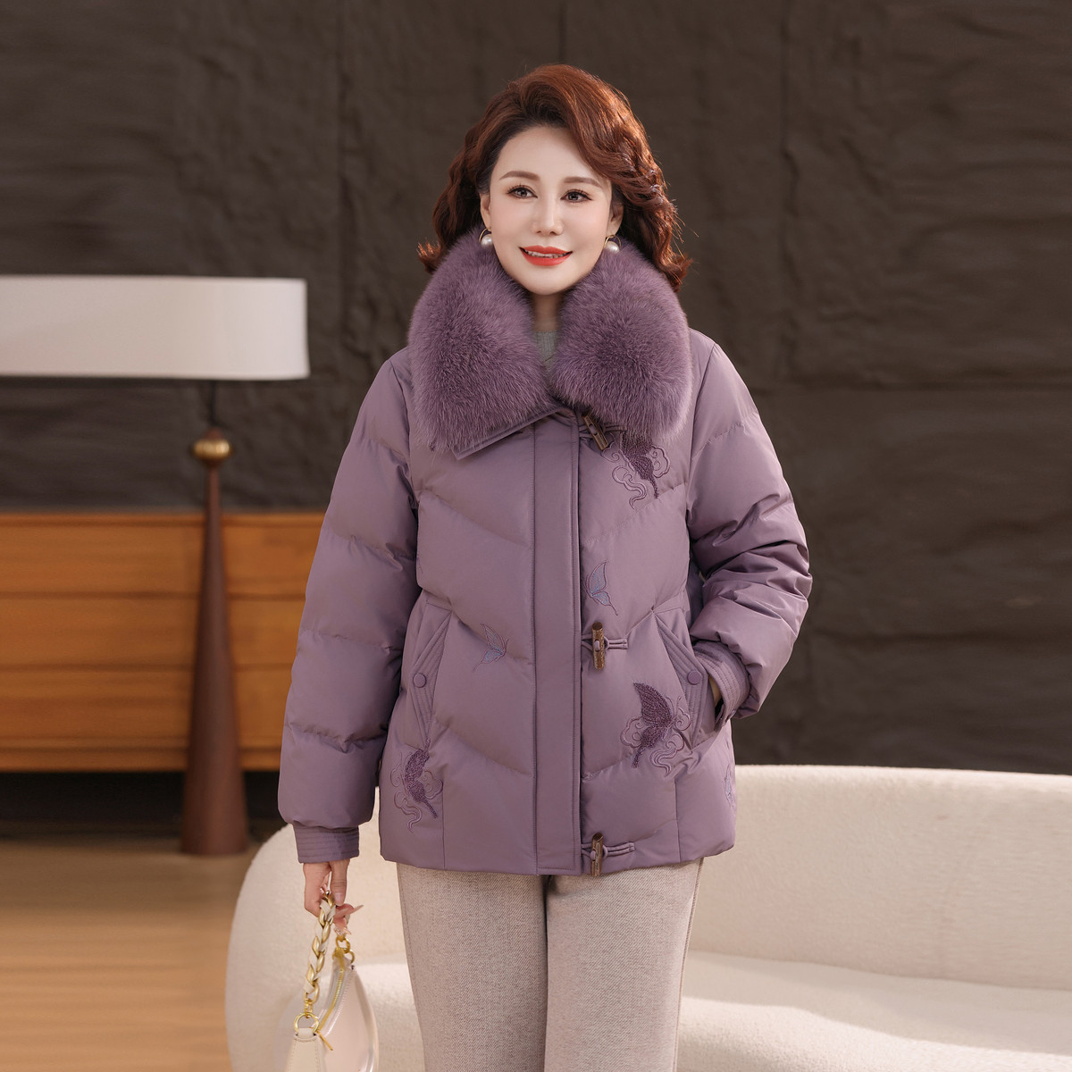 雪中飞2026春新款女士短款羽绒服狐狸毛领优雅新中式精致妈妈保暖