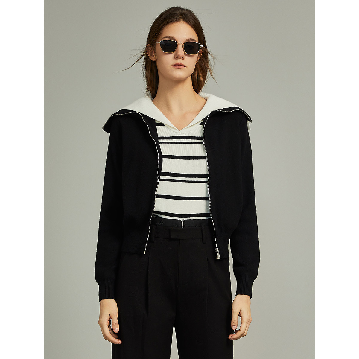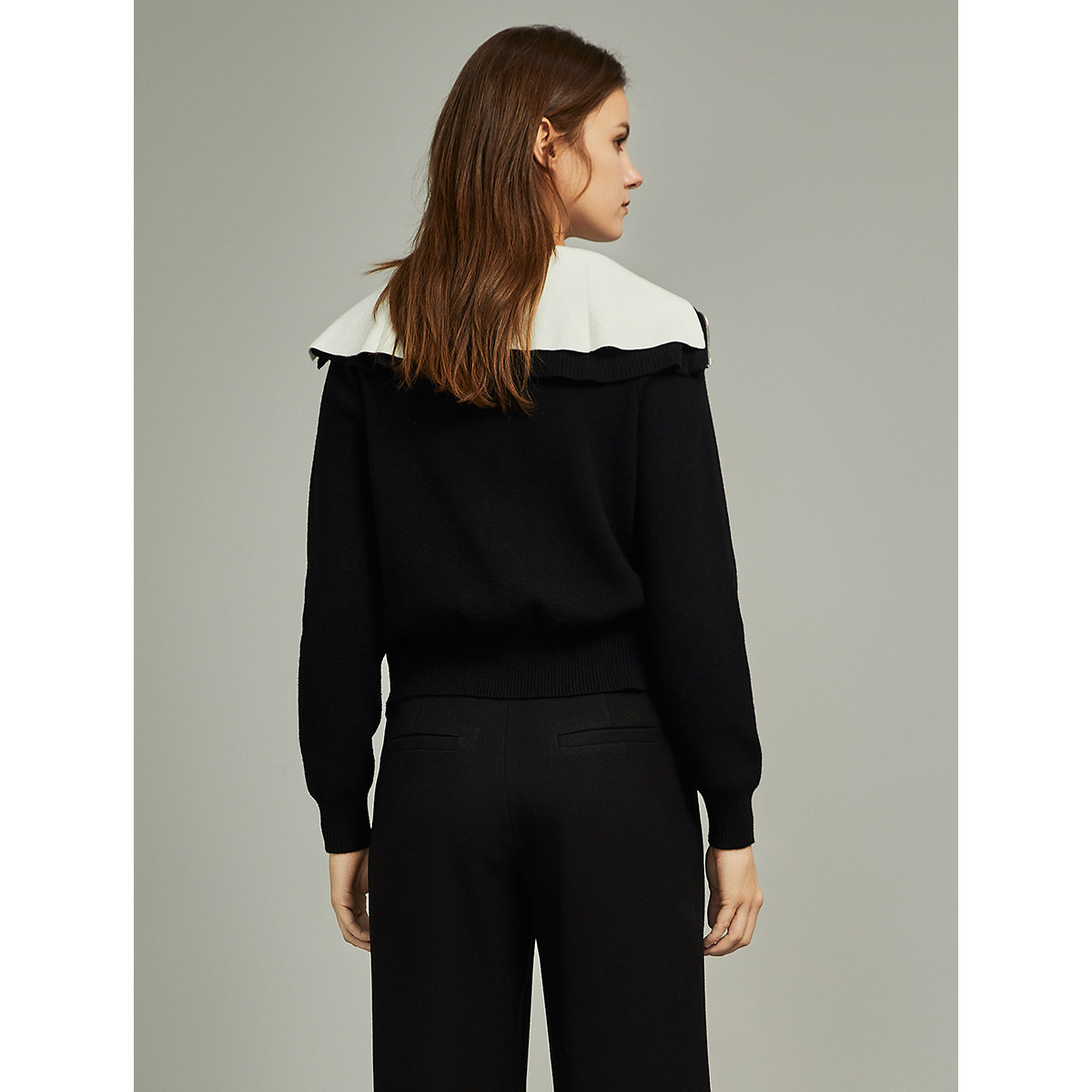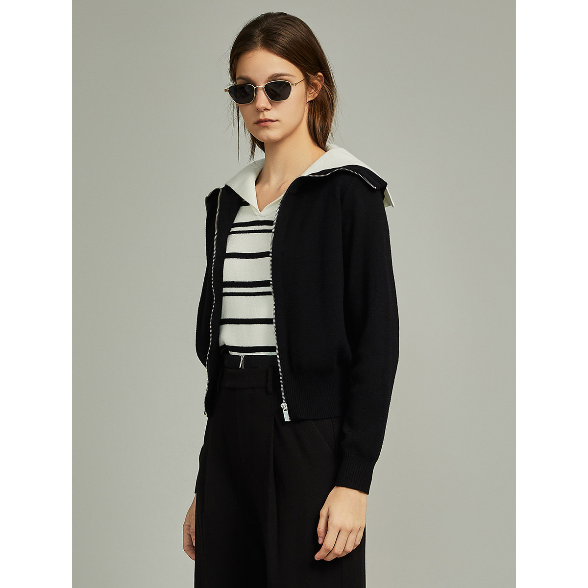 ELLE黑色法式设计感毛针织衫女2025冬装新款高级感超好看毛衣外套