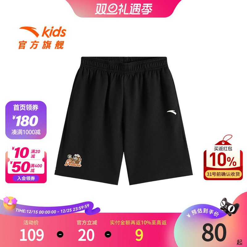 安踏儿童男大童针织五分裤2025夏季新款透气舒适中大童户外短裤潮