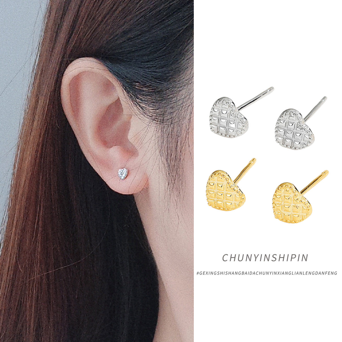 s925纯银简约心形耳钉气质饰品百搭爱心耳骨钉时尚耳环配饰女