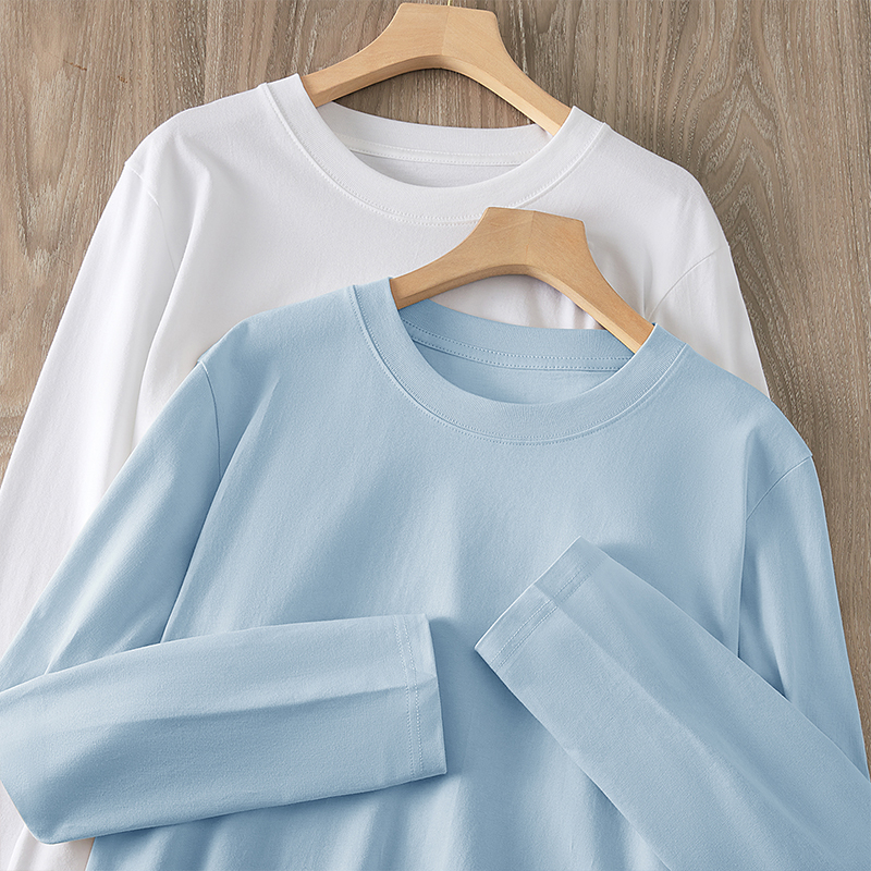 250g重磅纯棉长袖t恤宽松上衣白色体恤秋冬打底衫内搭t新疆棉螺纹