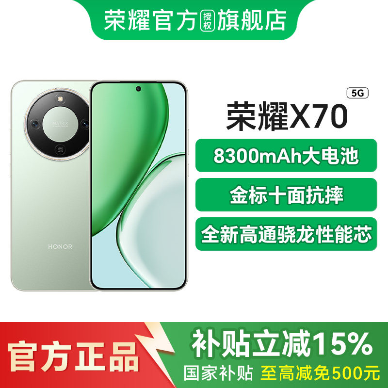 【政府补贴立减500元】HONOR/荣耀X70 5G智能手机十面抗摔防水8300mAh大电池5000万影像官方旗舰店国补手机