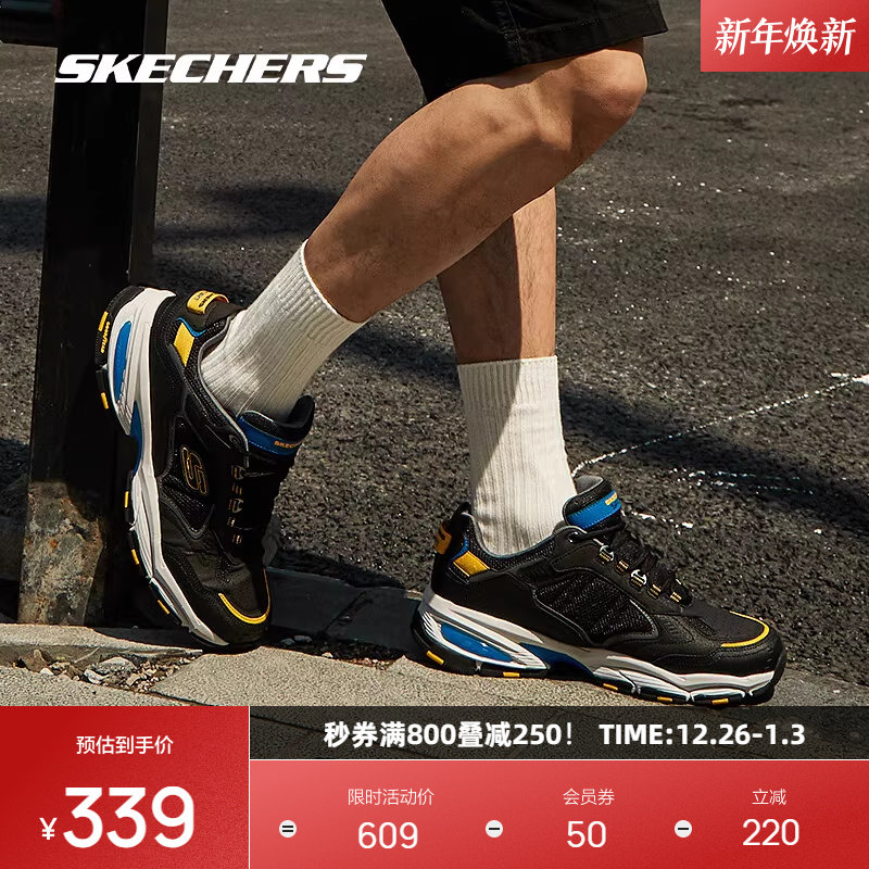斯凯奇男鞋复古潮流拼接低帮耐磨时尚老爹鞋舒适休闲运动鞋百搭