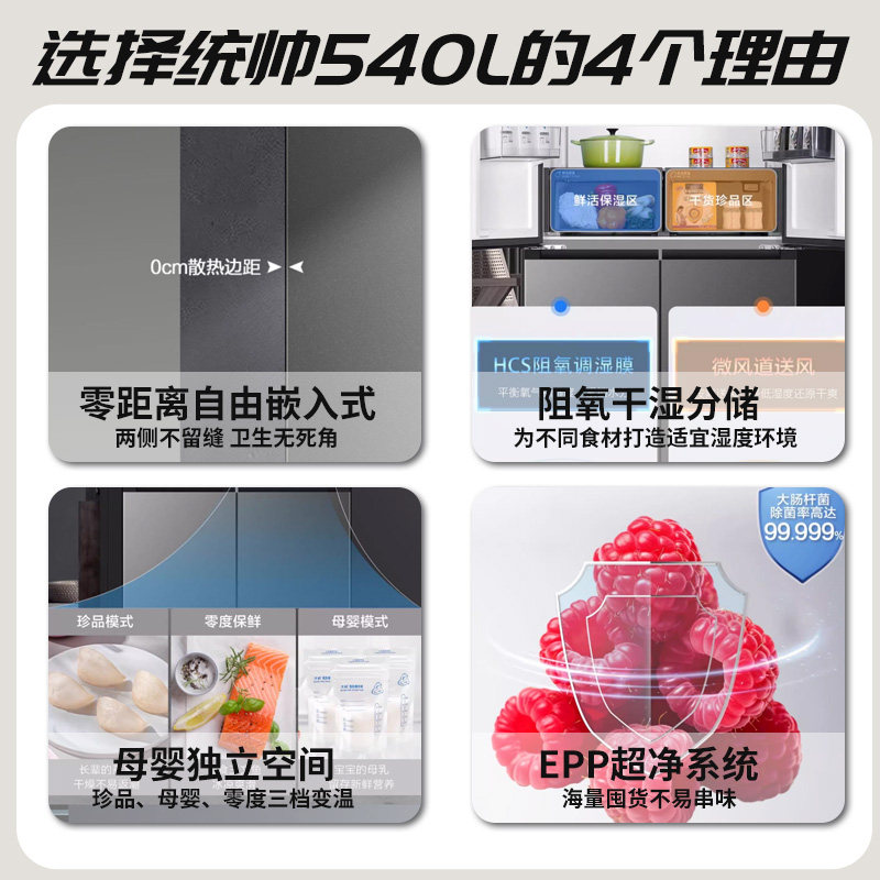 海尔零距离嵌入超薄T型四开多门冰箱统帅540
