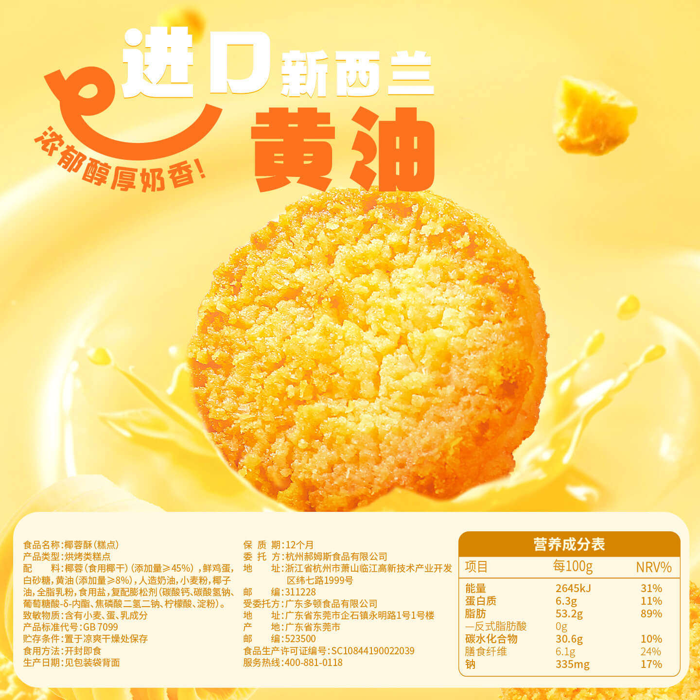 百草味黄油椰蓉酥180g糕点心休闲健康零食下午茶小吃饼干早餐