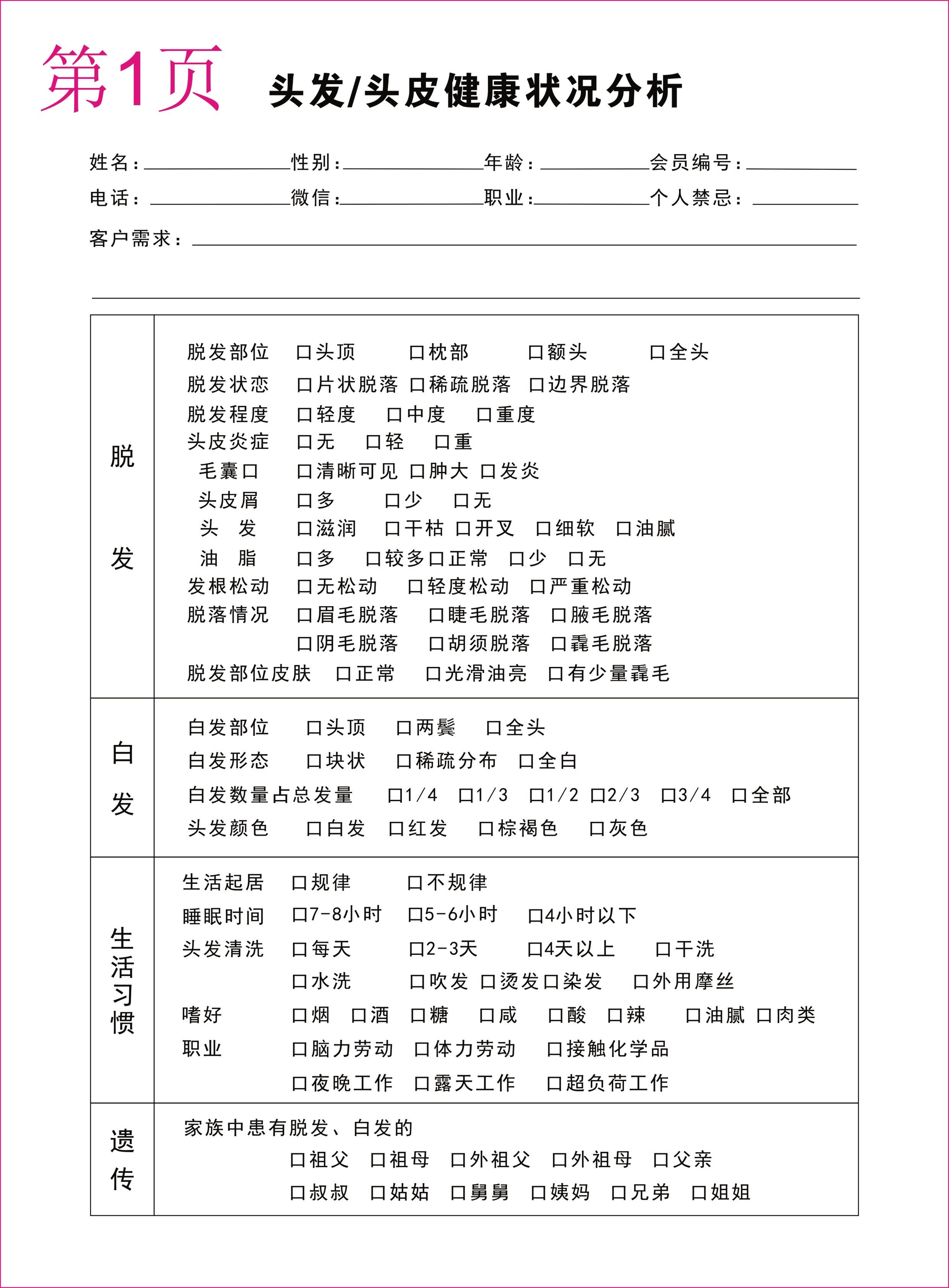 养发护发店美发店专用顾客档案记录本护理资料管理VIP客户登记本