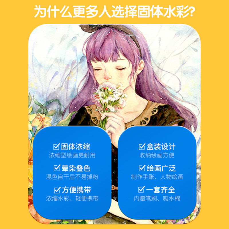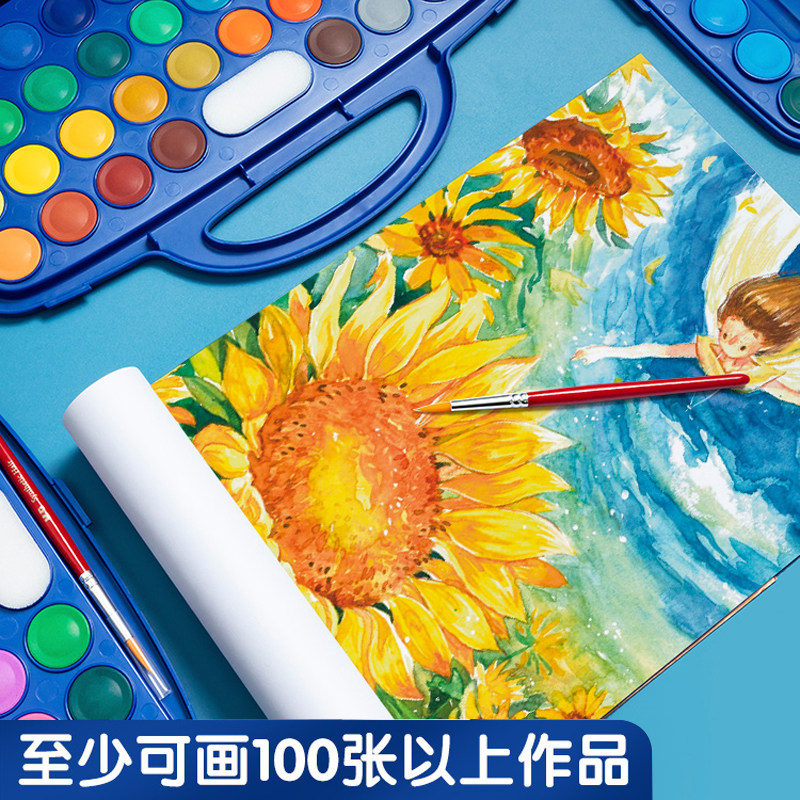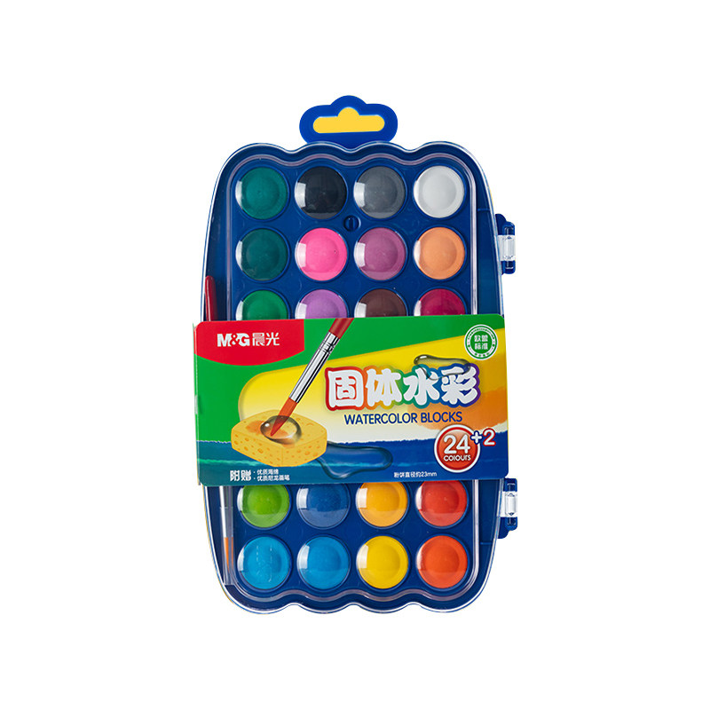 晨光固体水彩颜料儿童可水洗小学生美术专用绘画固体粉饼工具套装