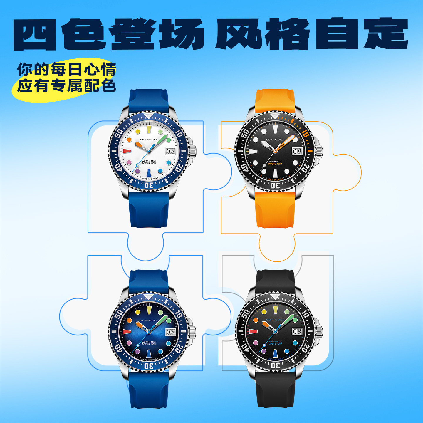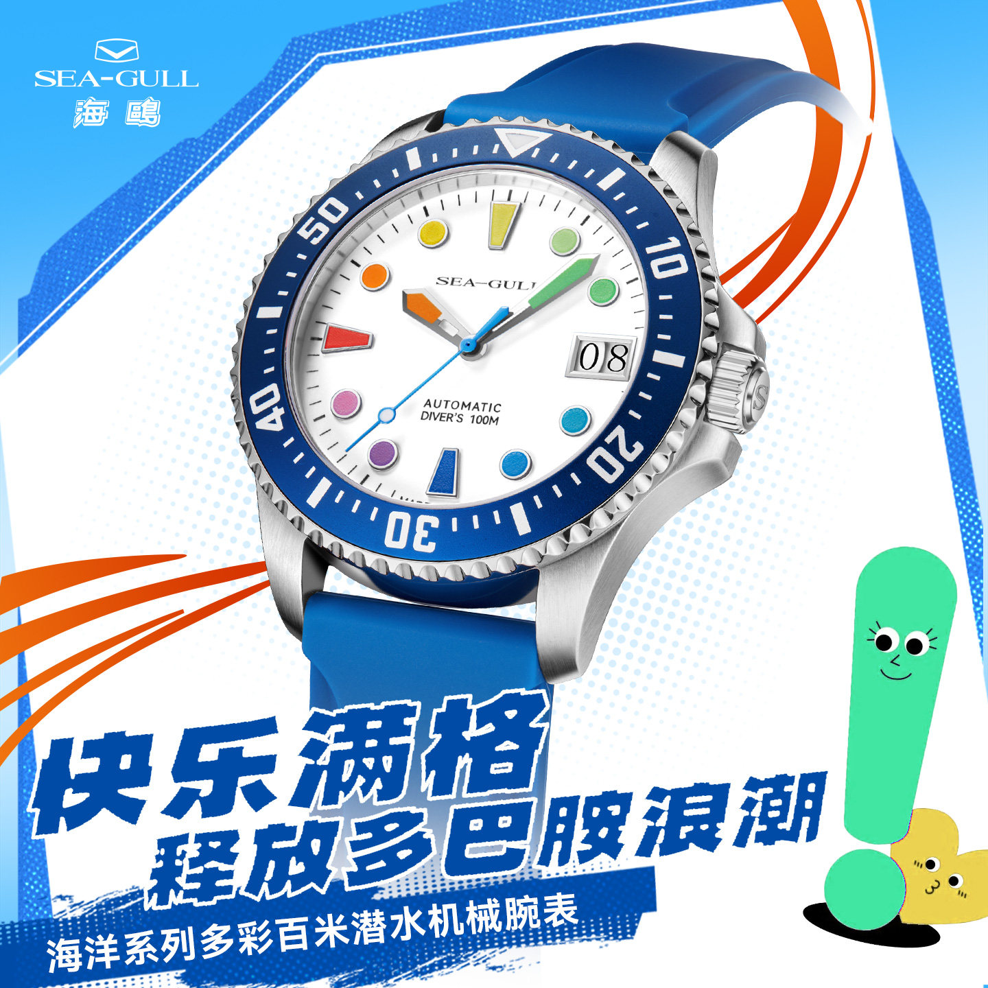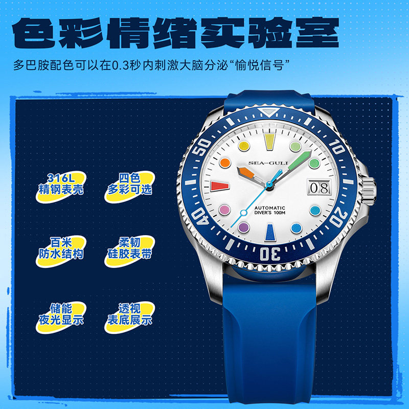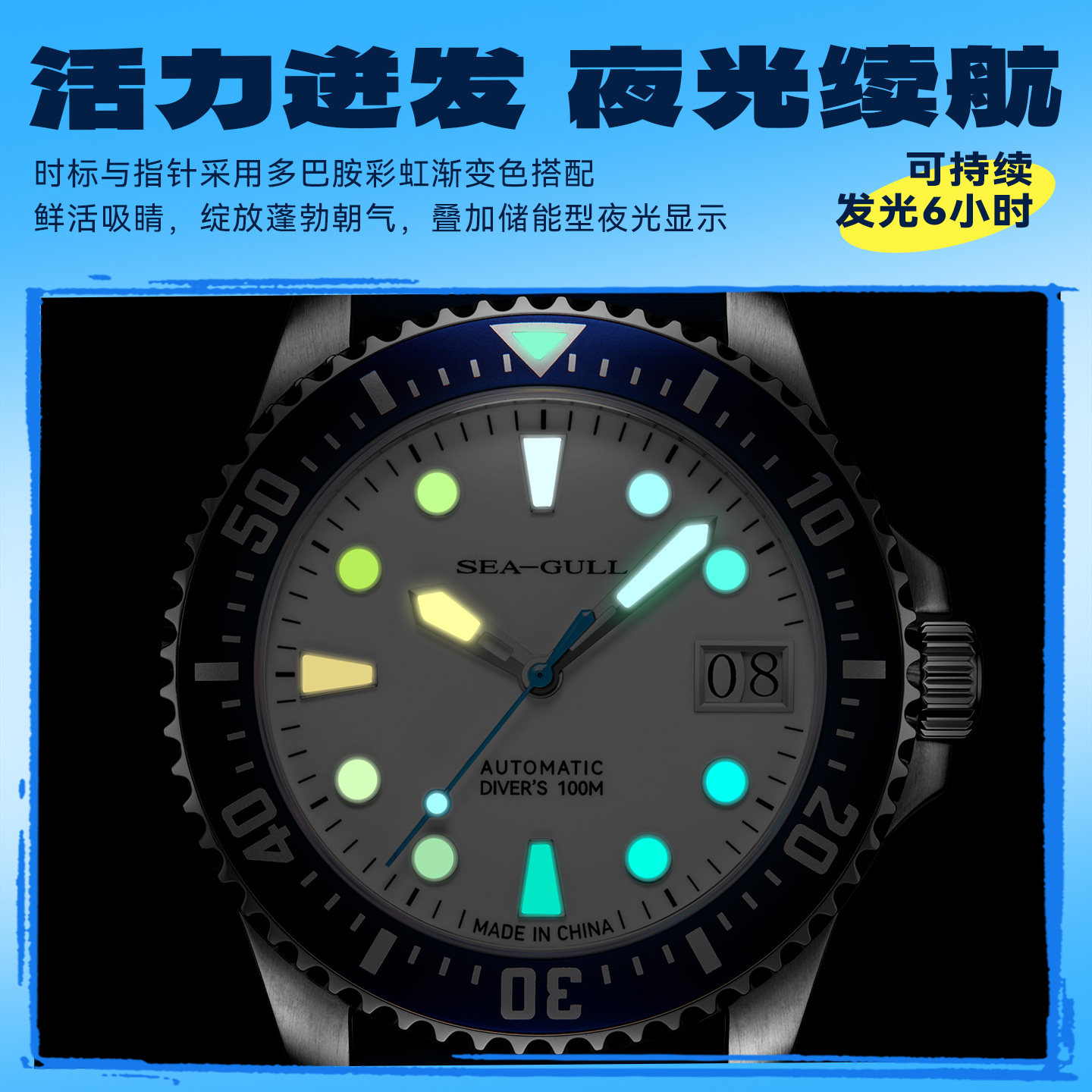 海鸥表男士手表时尚夜光百米防水潜水表机械表男款腕表6205