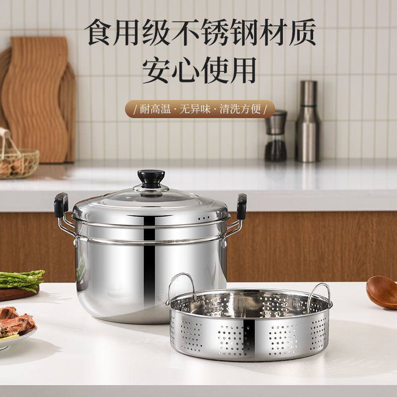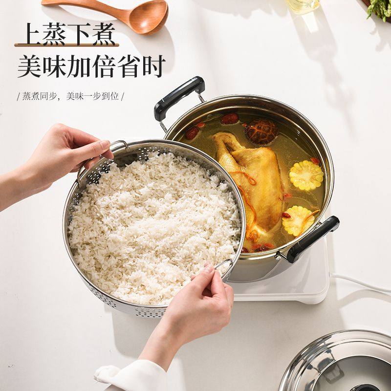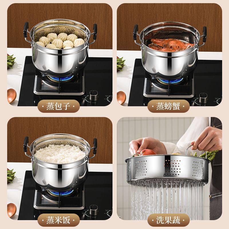 加厚单底不锈钢一层小蒸锅家用多用蒸笼煮大汤锅具燃气电磁炉通用