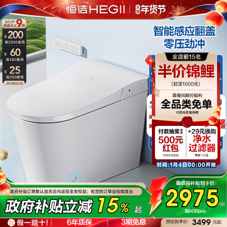 恒洁智能马桶全自动一体式坐便器小户型零压冲感应翻盖H31pro