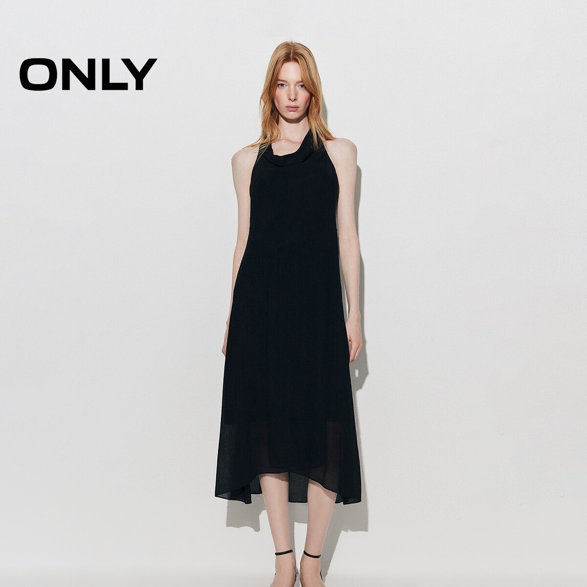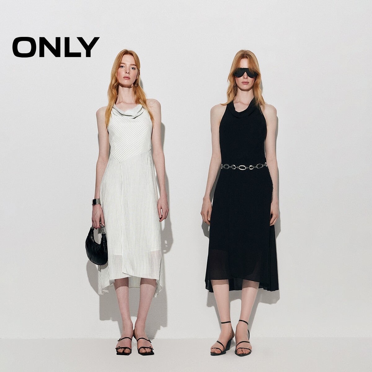 ONLY2026春季新款优雅荡领不规则拼接腰线裙子开叉裙摆连衣裙女