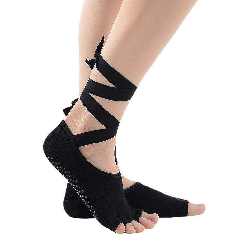 现货点胶防止滑 瑜伽袜五指袜露趾露背舞蹈袜绑带款瑜伽袜