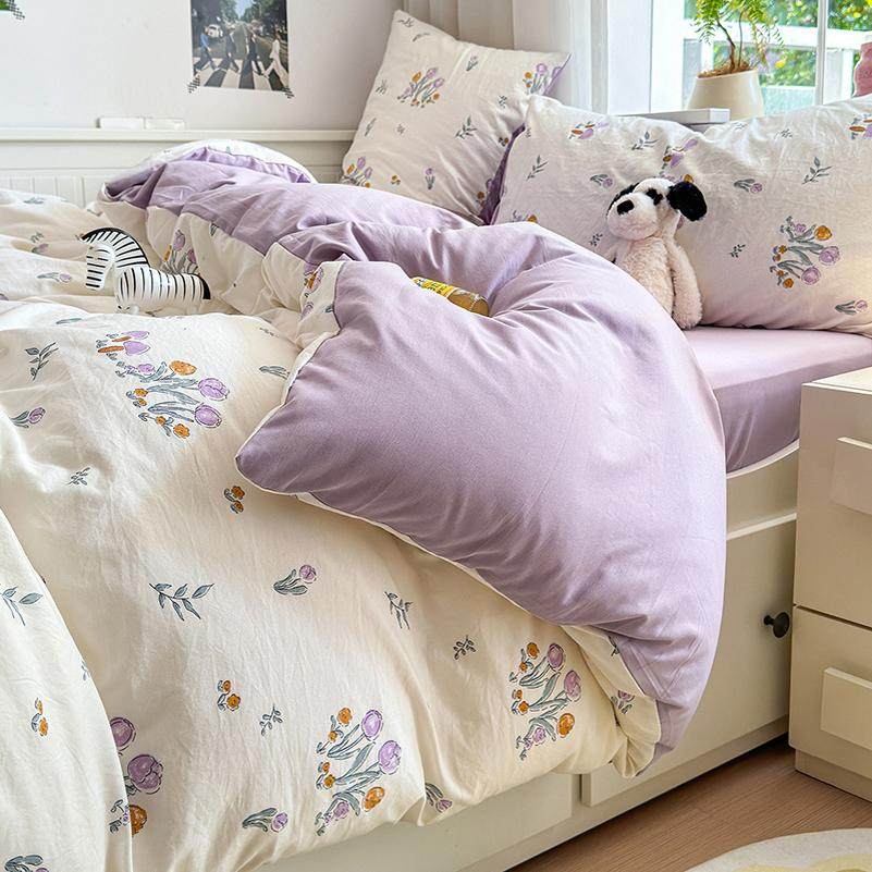 床上四件套纯棉全棉床笠款小碎花水洗棉被套床单人宿舍学生三件套