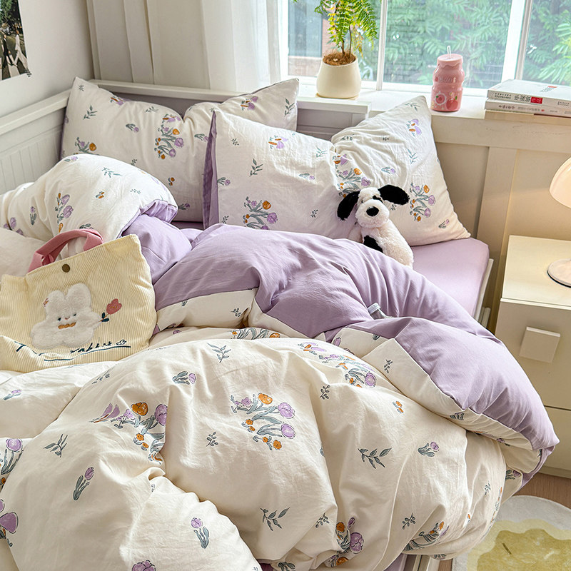 A类水洗棉双层纱四件套被罩非全棉纯棉床单人学生宿舍被套三件套