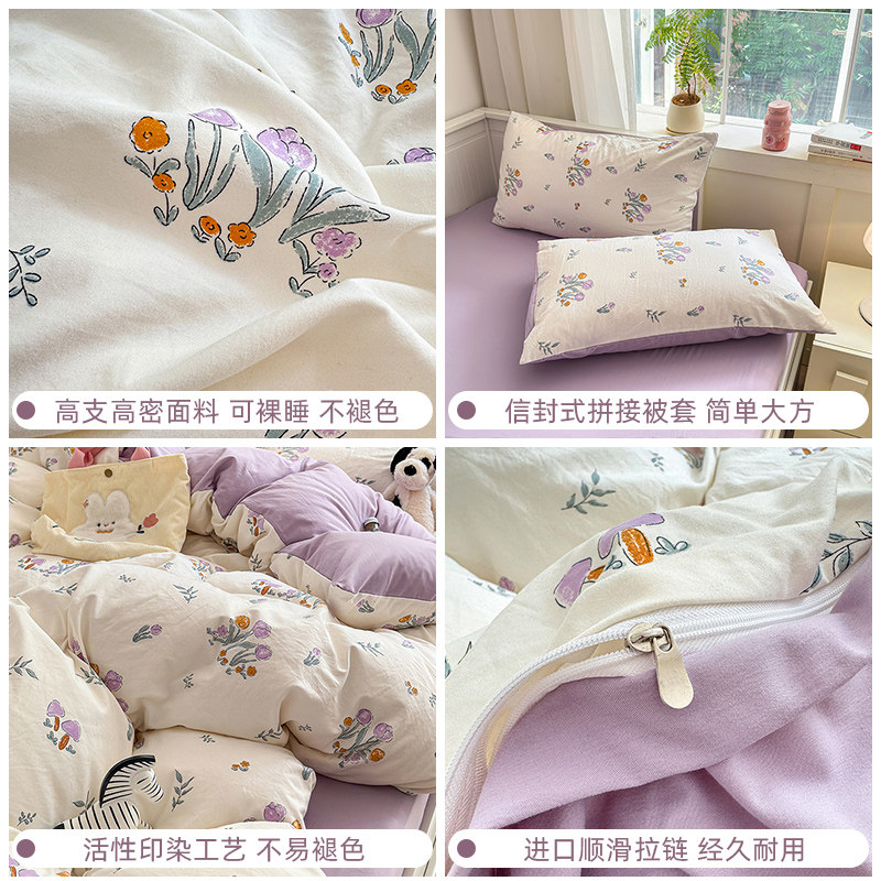 ins纯棉四件套床上2025新款全棉被套床单被罩学生单人宿舍三件套4