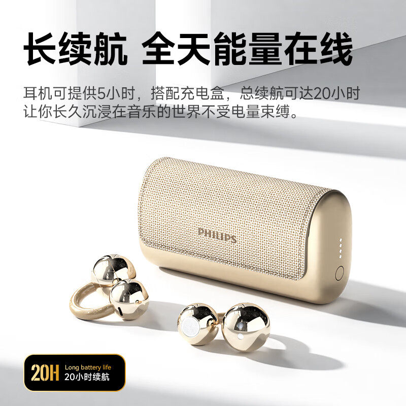 飞利浦夹耳式无线蓝牙V6.0耳机降噪开放不入耳麦防汗零压感高颜值