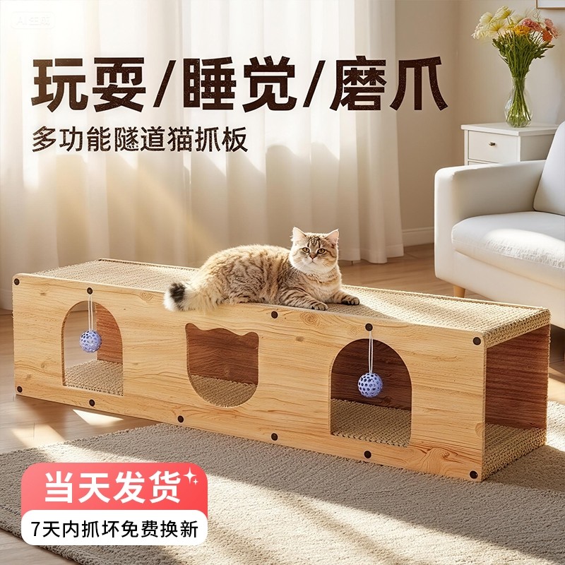 猫抓板猫隧道隧道瓦楞纸耐磨猫咪玩具猫屋立式一体不掉屑超大号