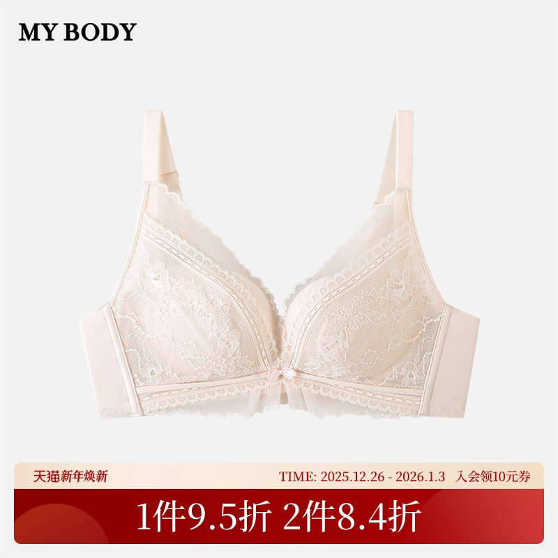 商场同款MYBODY内衣金线蕾丝中厚杯小胸聚拢显大舒适无钢圈文胸女