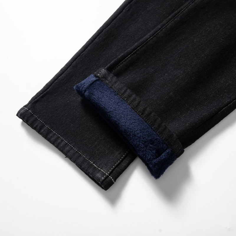 LR真维斯男款2026年春季新款加绒牛仔裤 黑色直筒保暖休闲长裤子