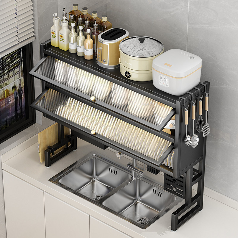 厨房水槽置物架洗碗槽台面防尘碗柜收纳多功能餐具储物沥水架碗碟