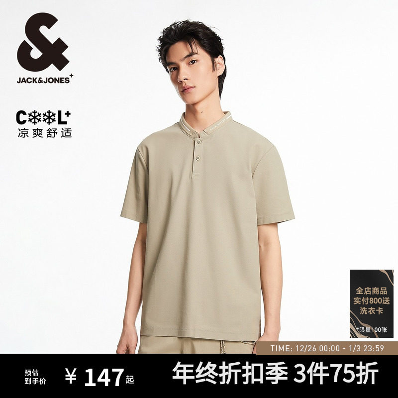 杰克琼斯翻领男装新款式士秋商务冰丝T恤高级25小立领POLO衫短袖