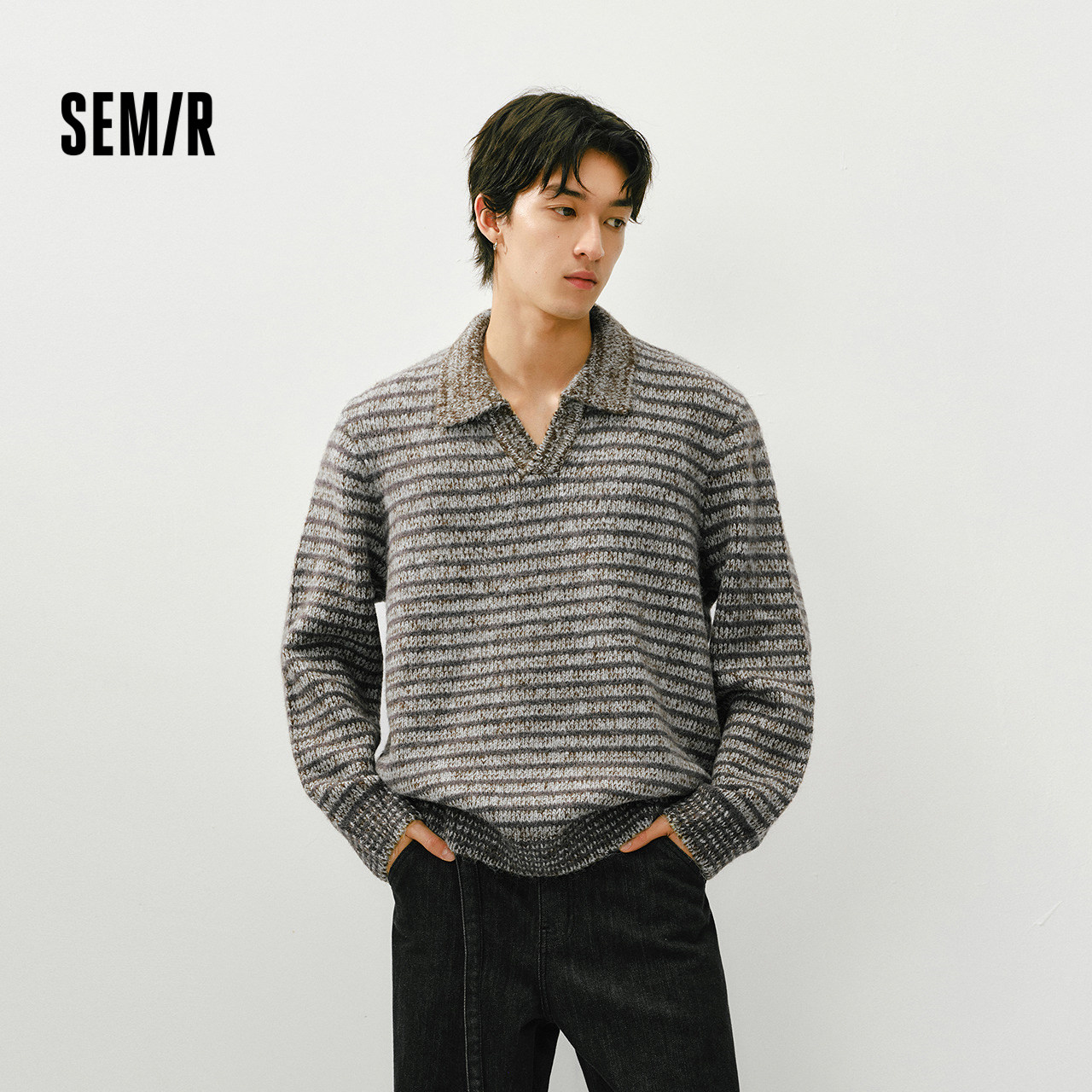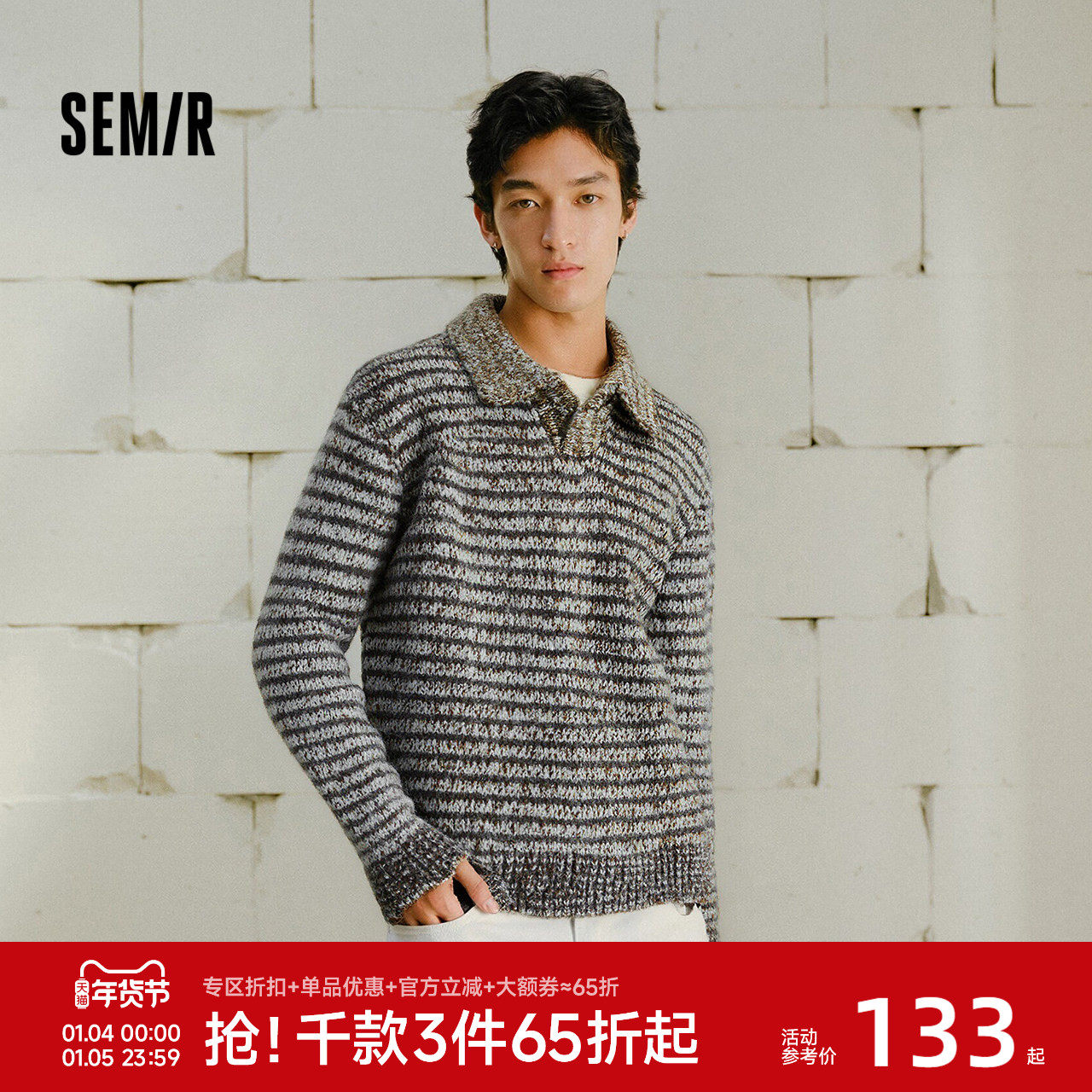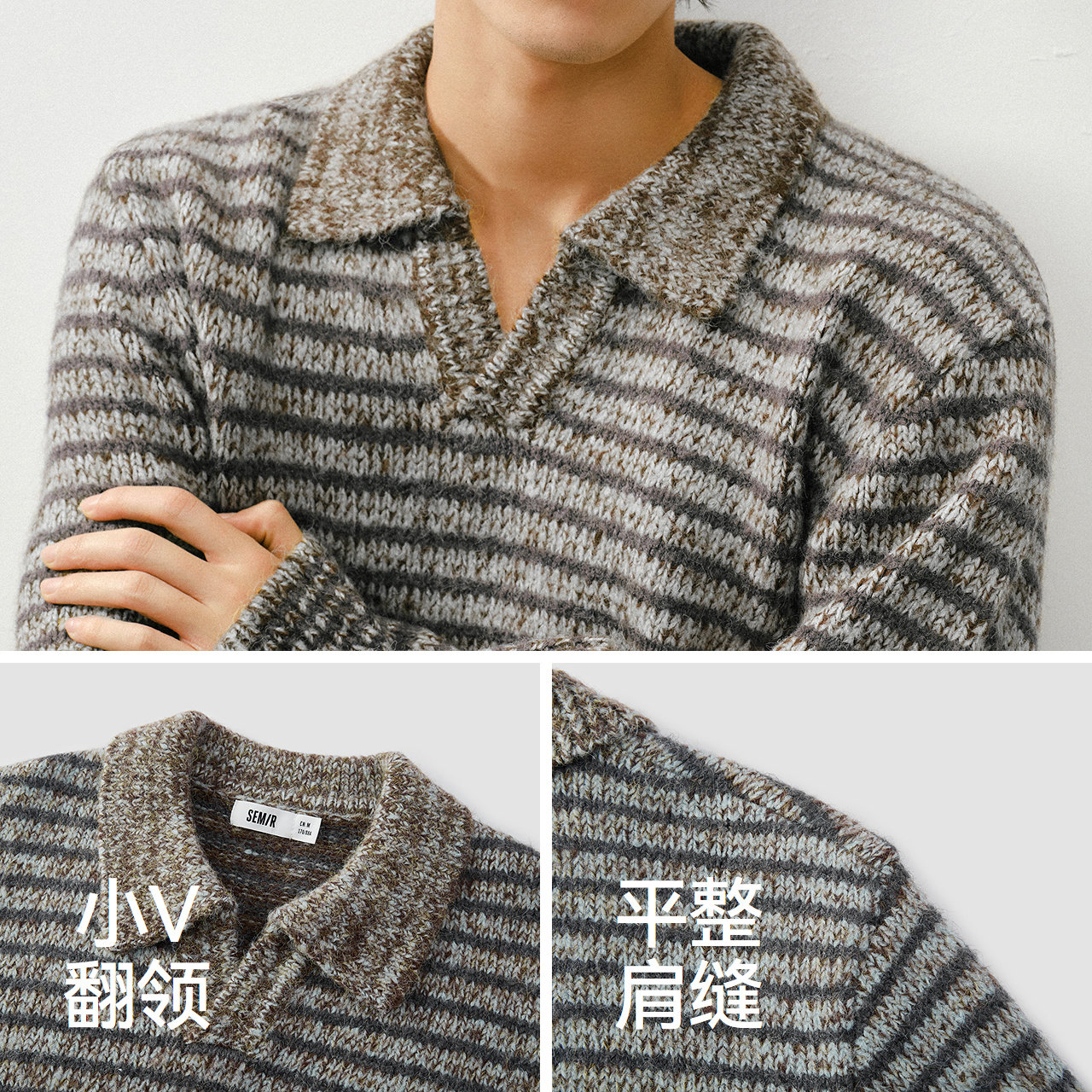 森马毛衫男冬季条纹POLO毛衣2025新款花纱复古提花情侣针织衫宽松