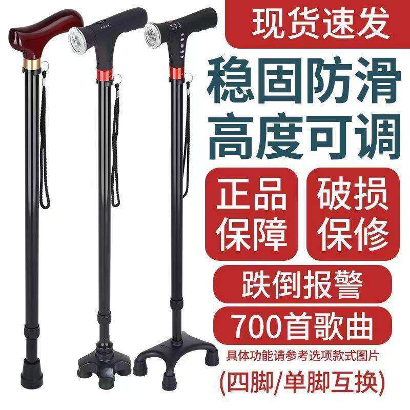 拐杖老年人拐棍带灯智能防登山杖摔报警拐扙老人防滑伸缩四脚手杖