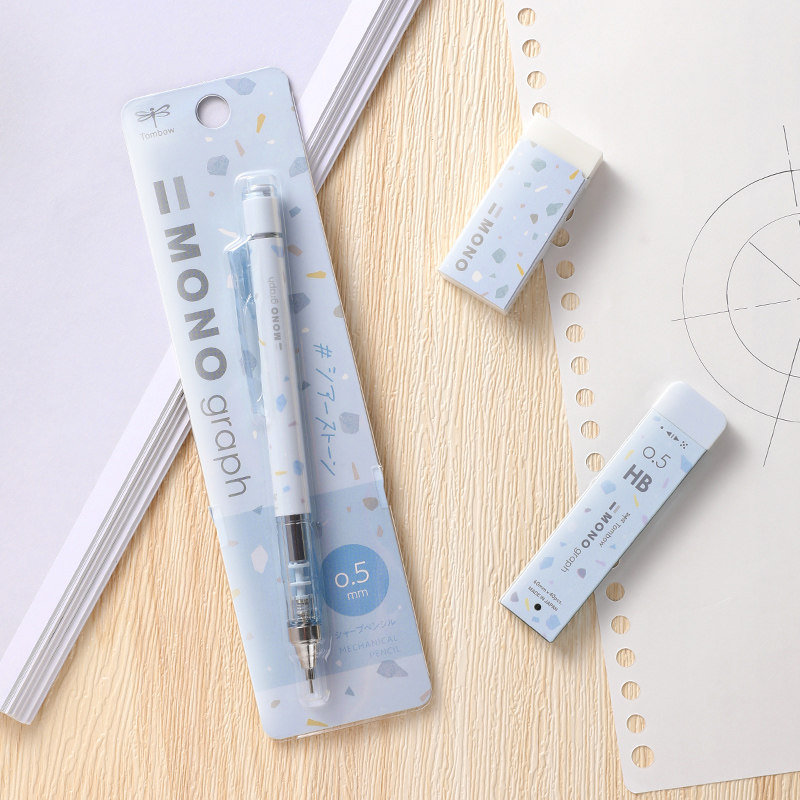 限定款]日本Tombow蜻蜓mono自动铅笔0.5国誉大理石系列百乐联名款中小学写字用笔HB高颜值自动笔文具不易断芯