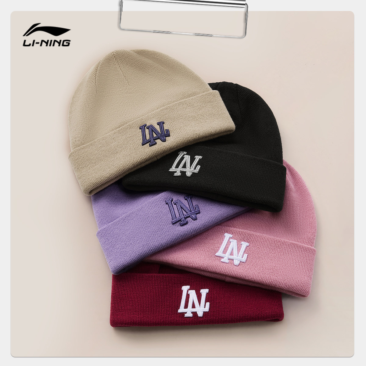 李宁针织帽男女2025新款官方正品大头围红色户外毛线冷帽运动帽子