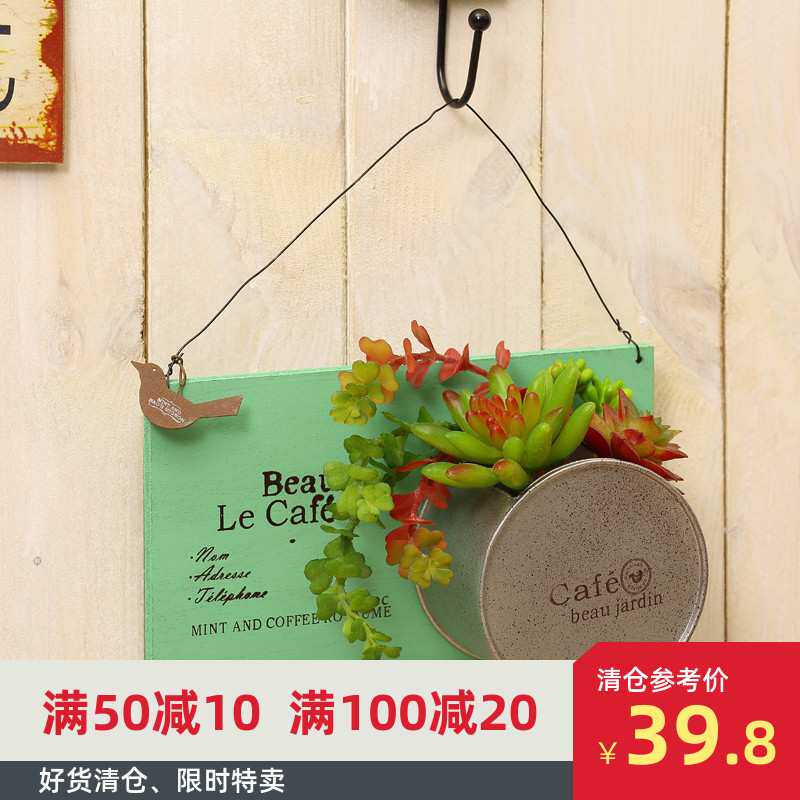 促销惠复古马口铁仿真多肉植物组合盆栽假花摆件插花壁挂装饰花艺