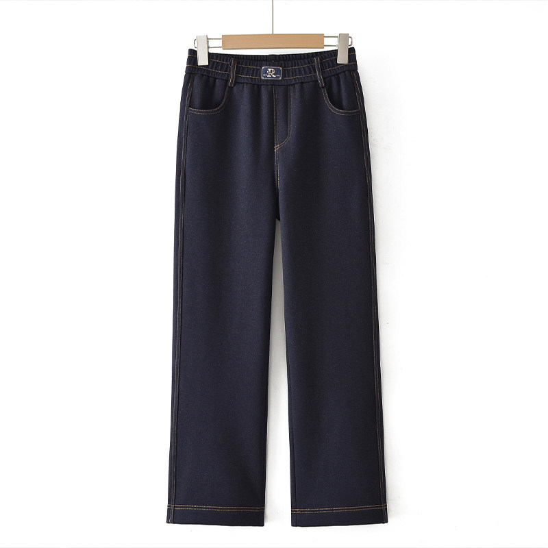 2025新款妈妈冬装加绒加厚牛仔裤中老年女装高腰显瘦直筒阔腿长裤