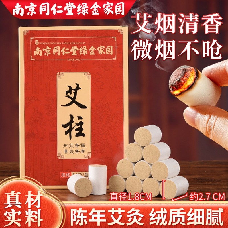 南京同仁堂艾灸柱陈年艾柱艾条艾绒艾灸盒随身54粒家用装绿金家园