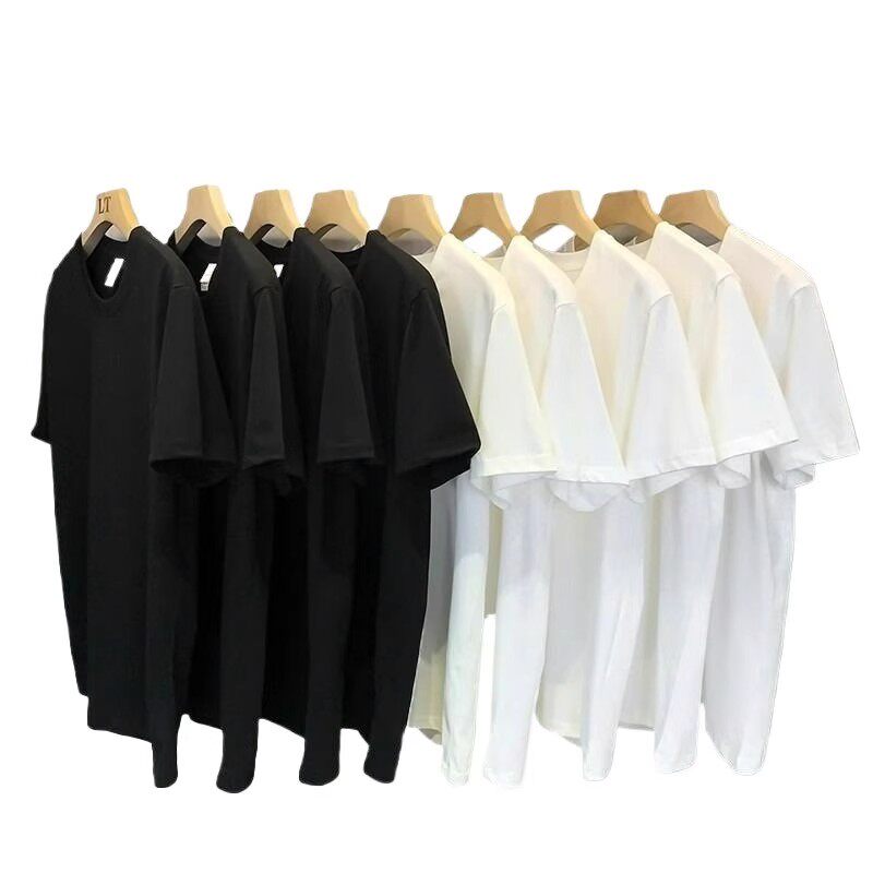 新疆棉400g重磅纯棉短袖t恤男女情侣半袖夏季白色圆领宽松打底衫