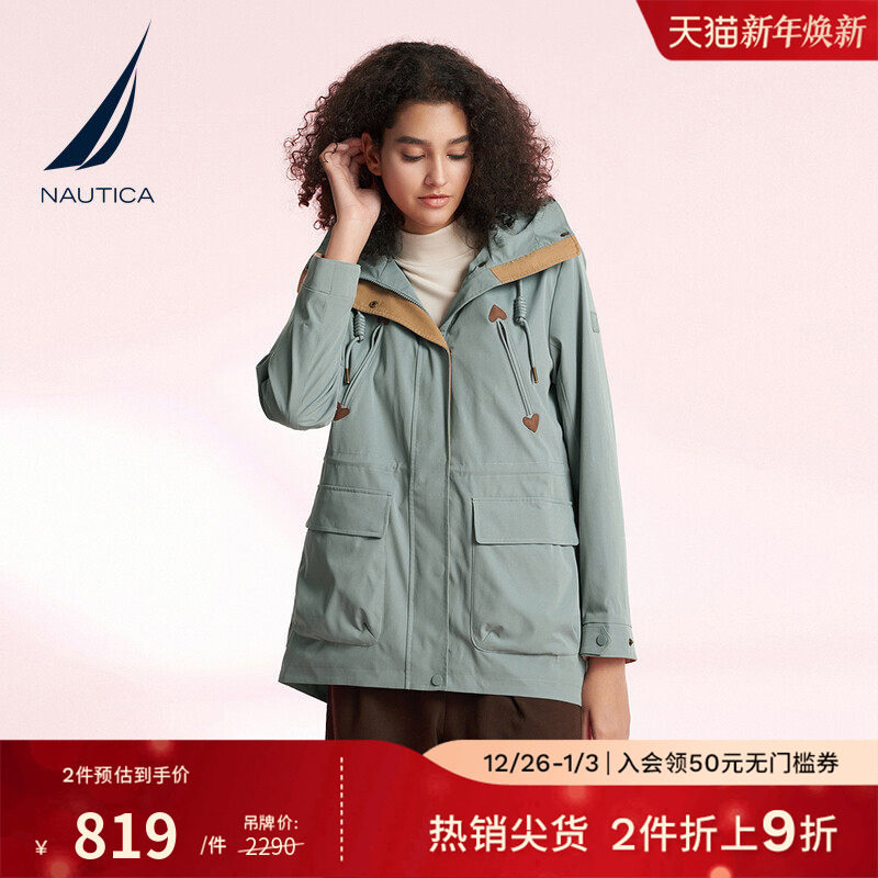 NAUTICA/诺帝卡女装春秋款防轻泼水宽松休闲连帽夹克外套33JO03