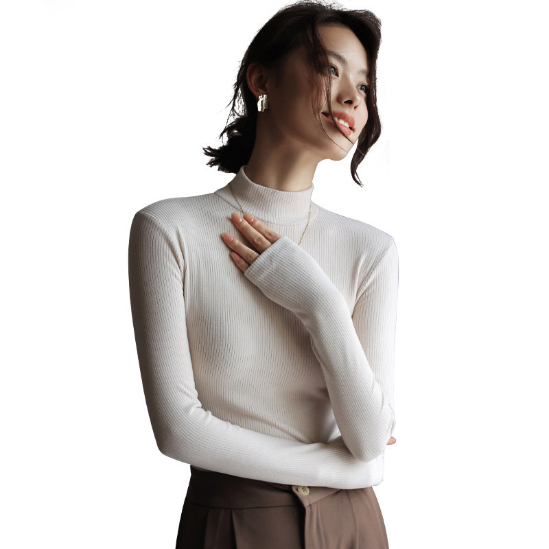 widelia十三行老板娘冬正肩小立领半高领打底衫弹力长袖T恤女9585