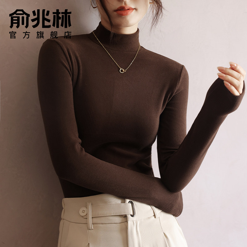 咖色半高领打底衫女2025新款秋冬季内搭磨毛针织毛衣修身中领上衣