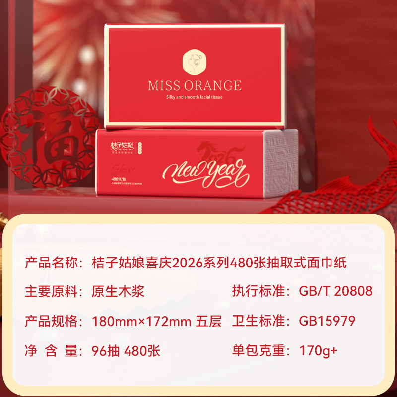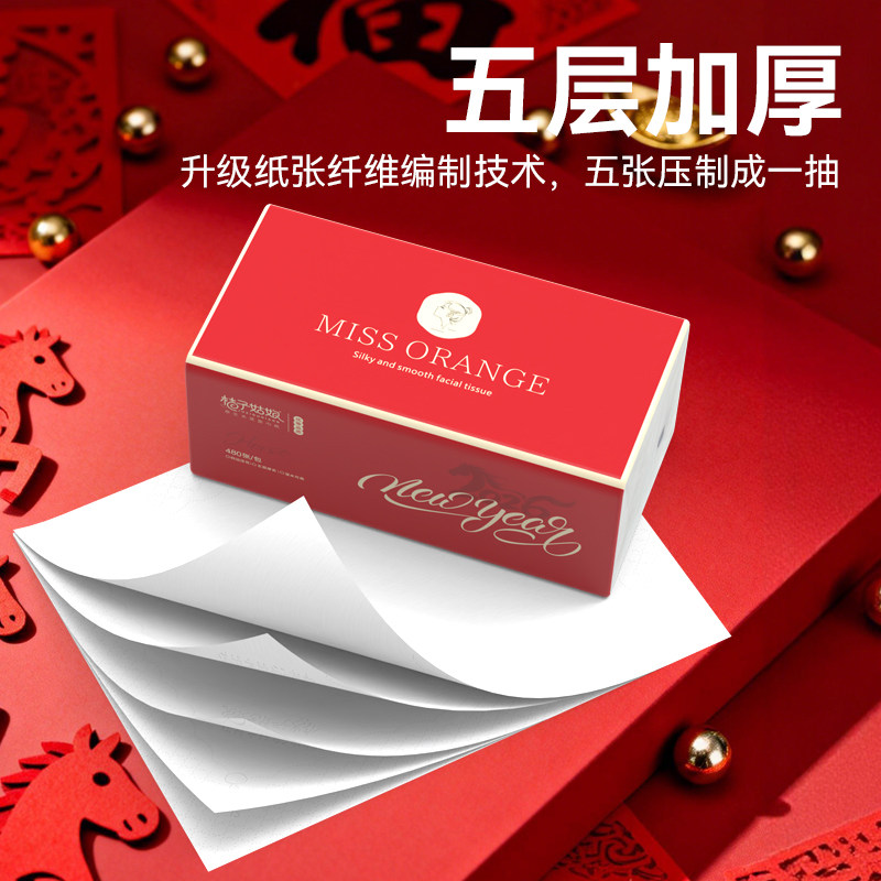 桔子姑娘纸巾抽纸新年装大包喜庆餐巾纸加厚卫生纸抽整箱批发橘子