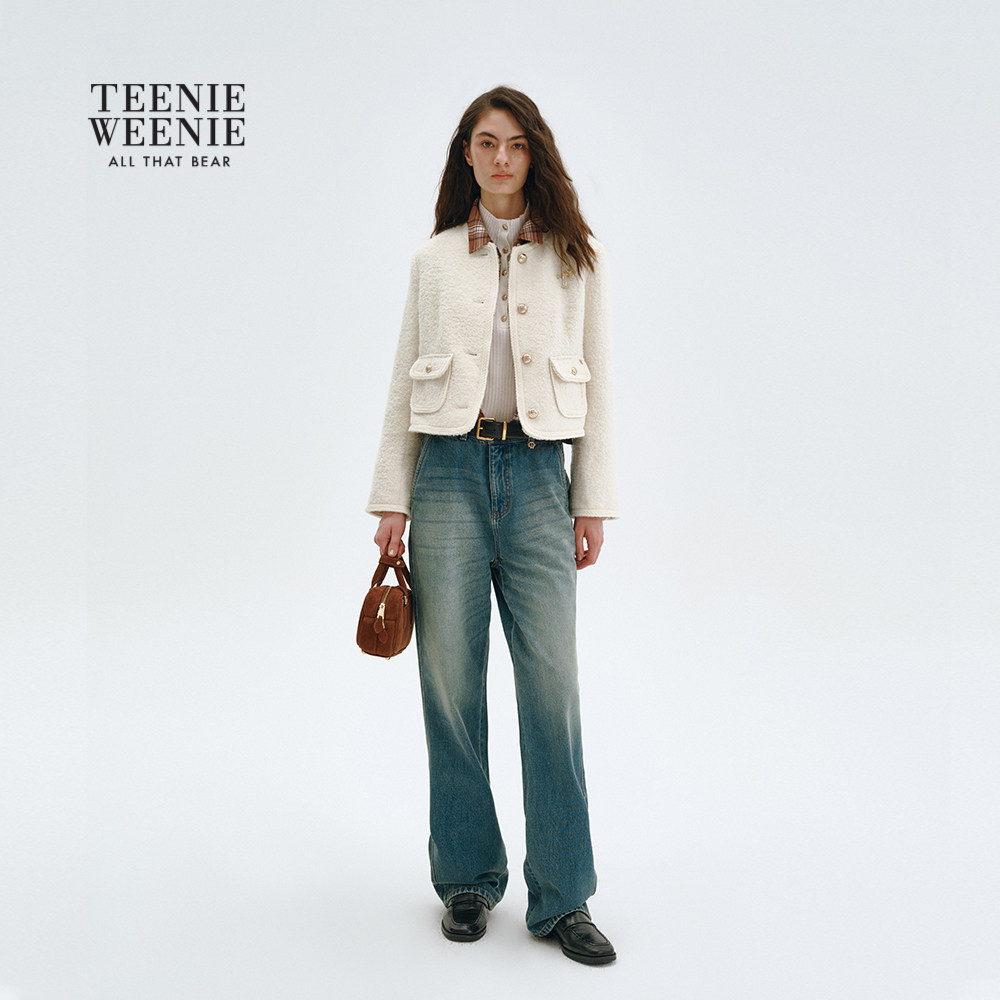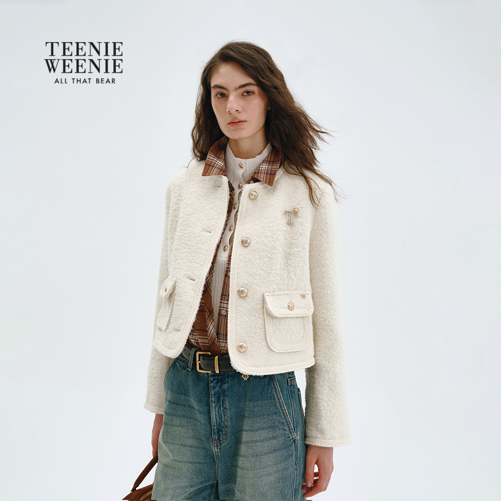TeenieWeenie小熊女装毛呢大衣2025冬季新款气质优雅金扣圆领外套