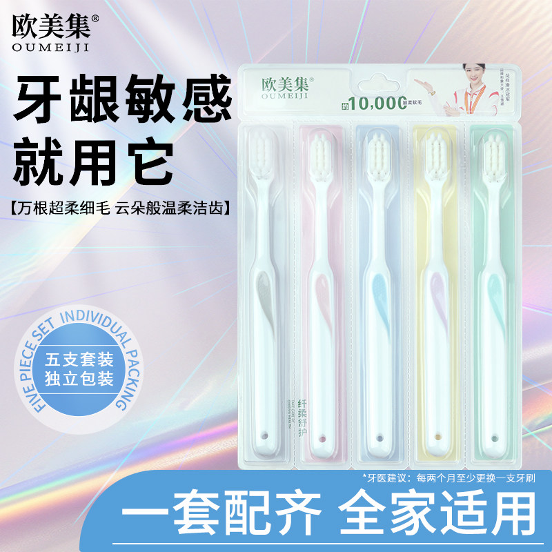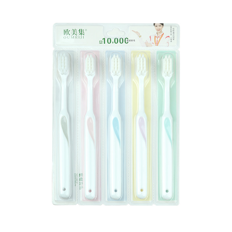 (颜色随机)惠百施日本进口宽头护龈牙刷超软毛54孔5支成人组合