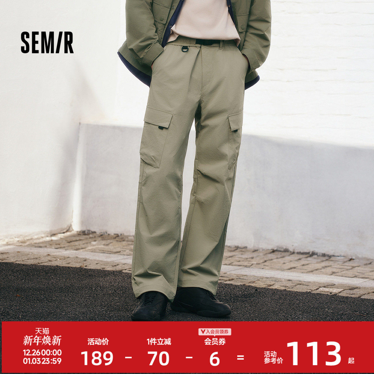 森马休闲裤男春季宽松直筒工装裤户外机能长裤大口袋微皱纹理裤子