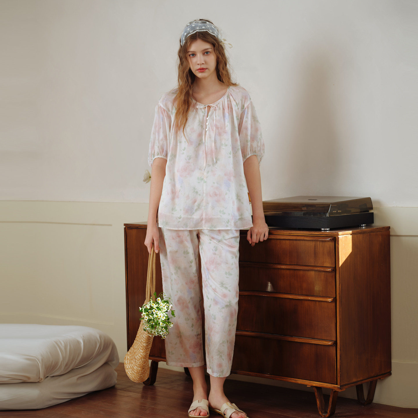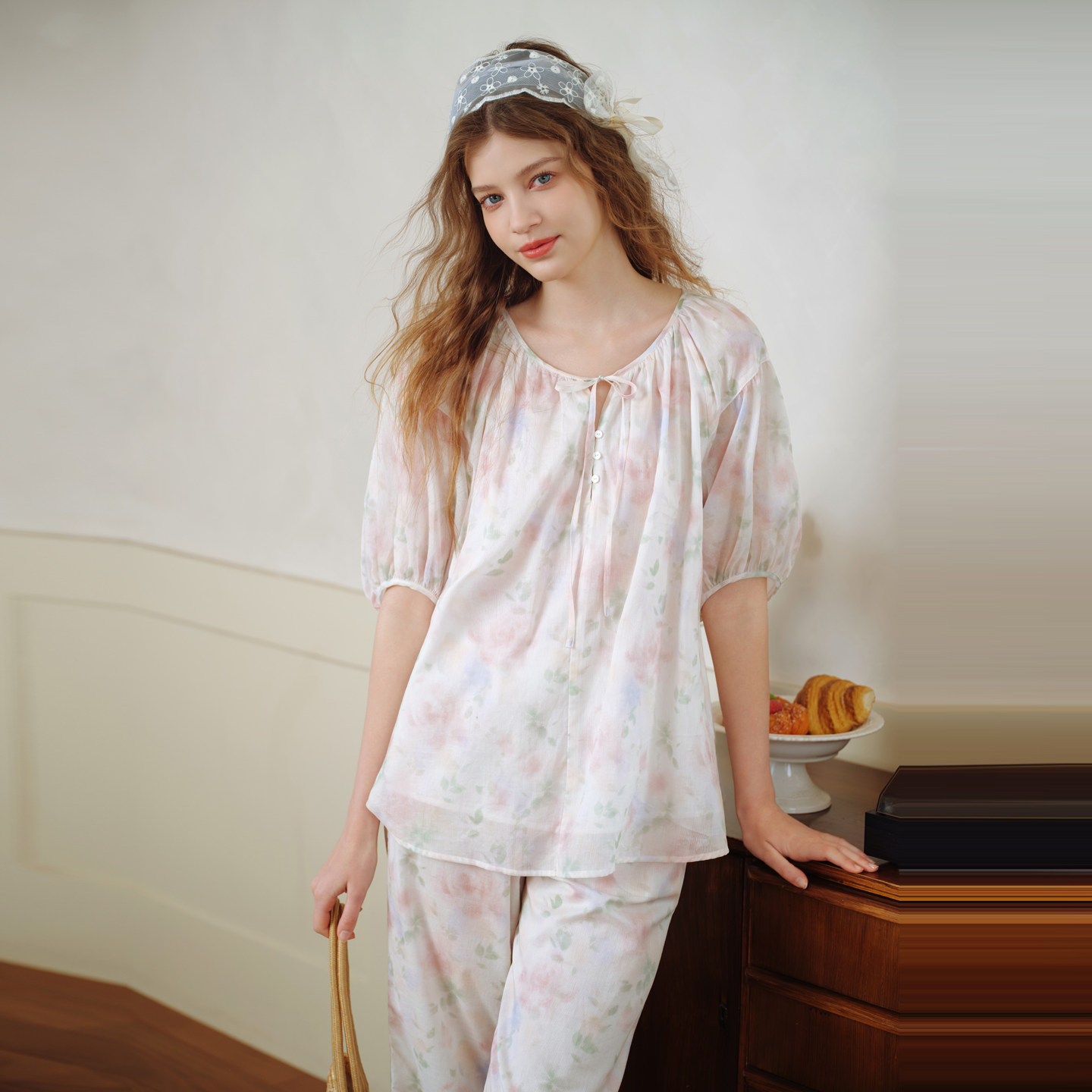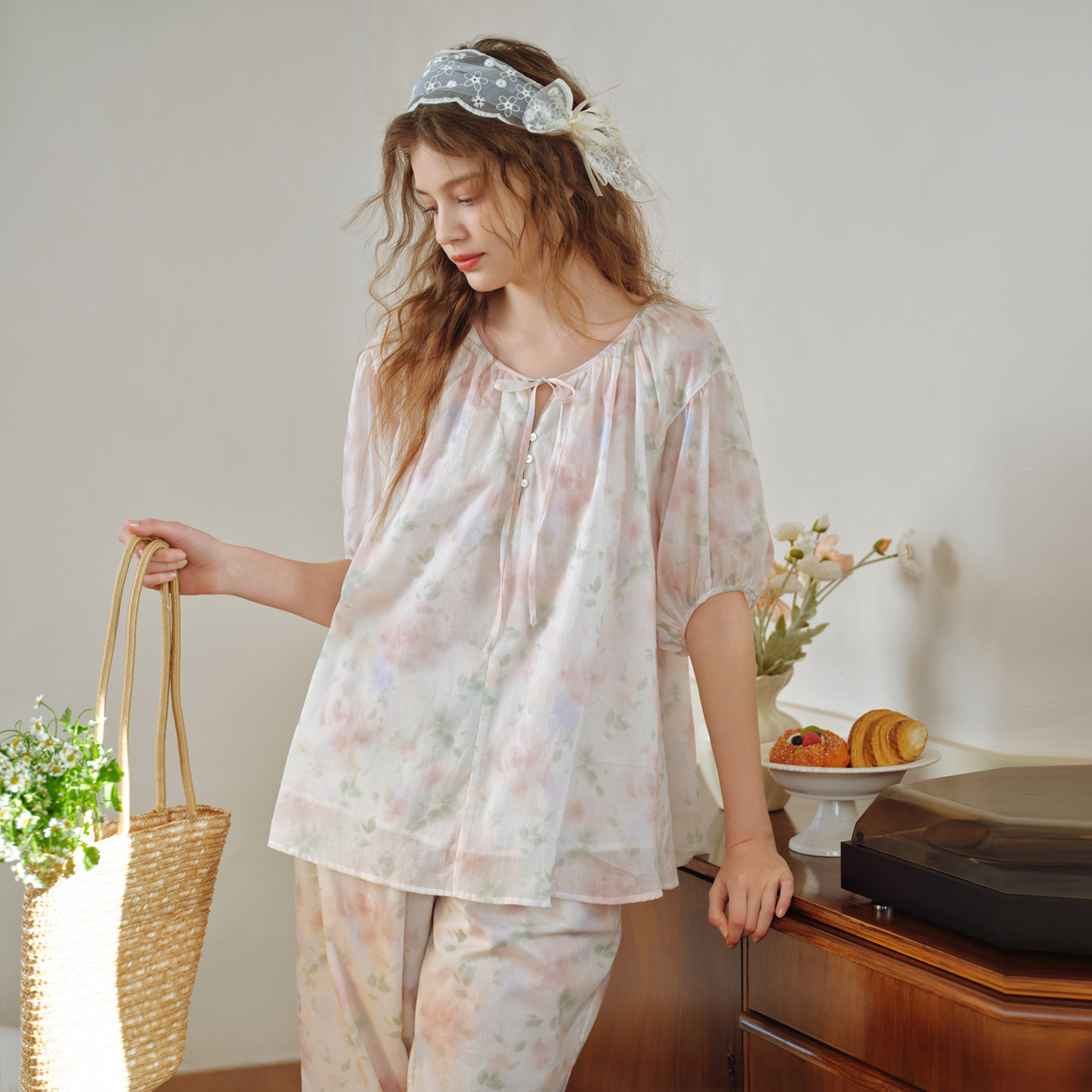 美标2026春夏新款中袖纯棉睡衣套装女可外穿甜美公主风全棉家居服
