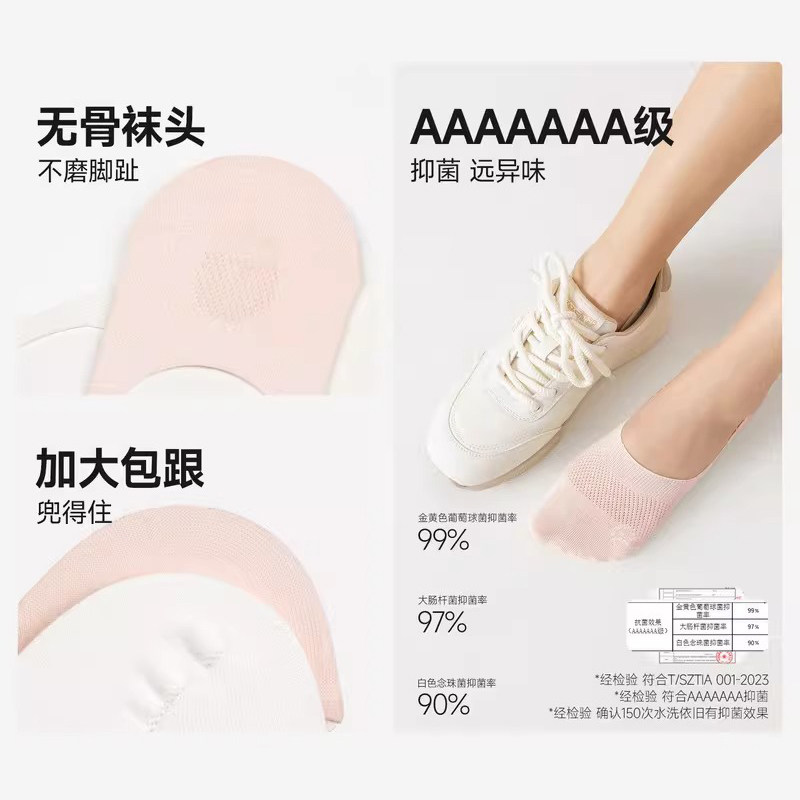 抗菌防臭|蕉内银皮500E女士船袜隐形不掉跟防滑防臭浅口单鞋袜子