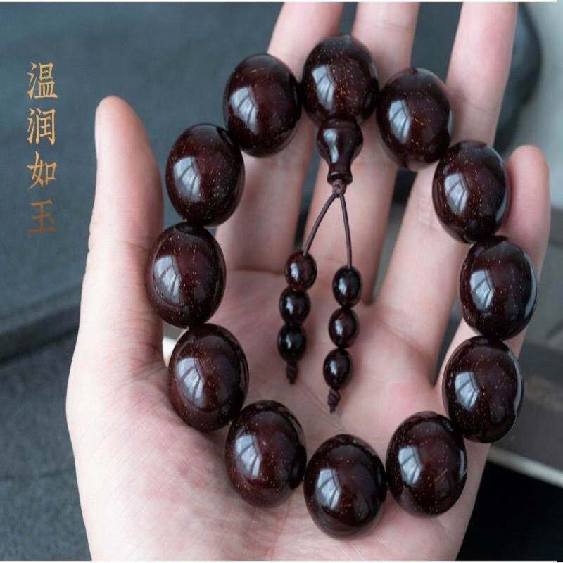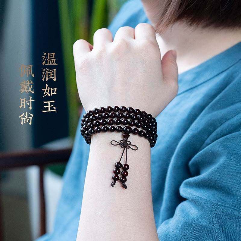 小叶紫檀手串佛珠印度檀香木文玩金星多圈手链男女108颗.老料包浆