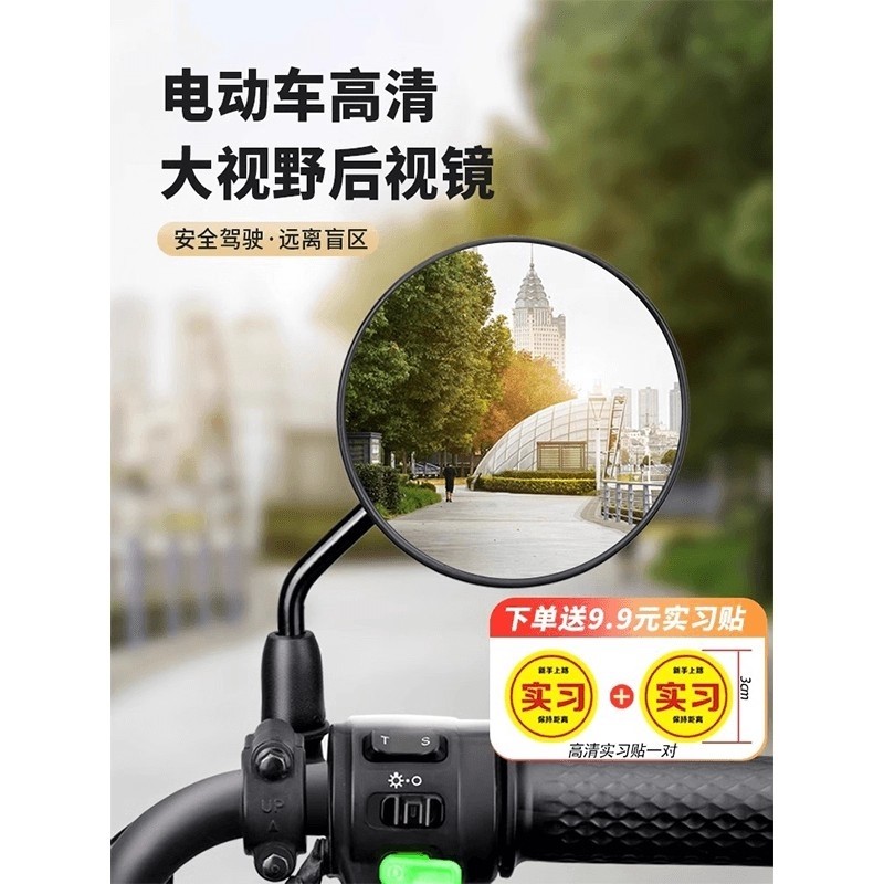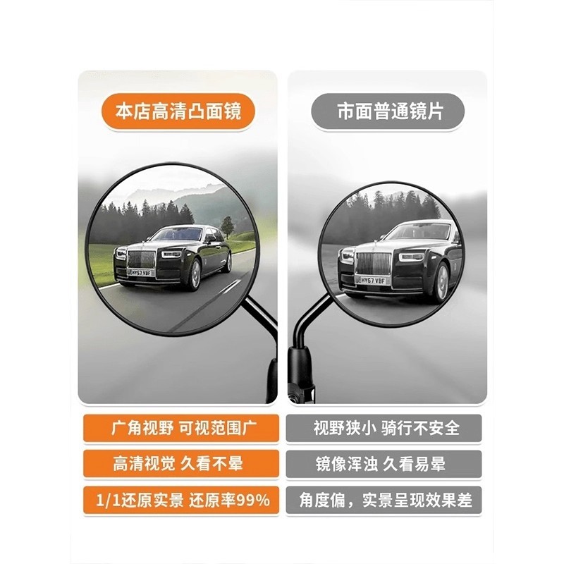 电动电瓶车后视镜自行车短杆圆镜大视野倒车反光镜子通用