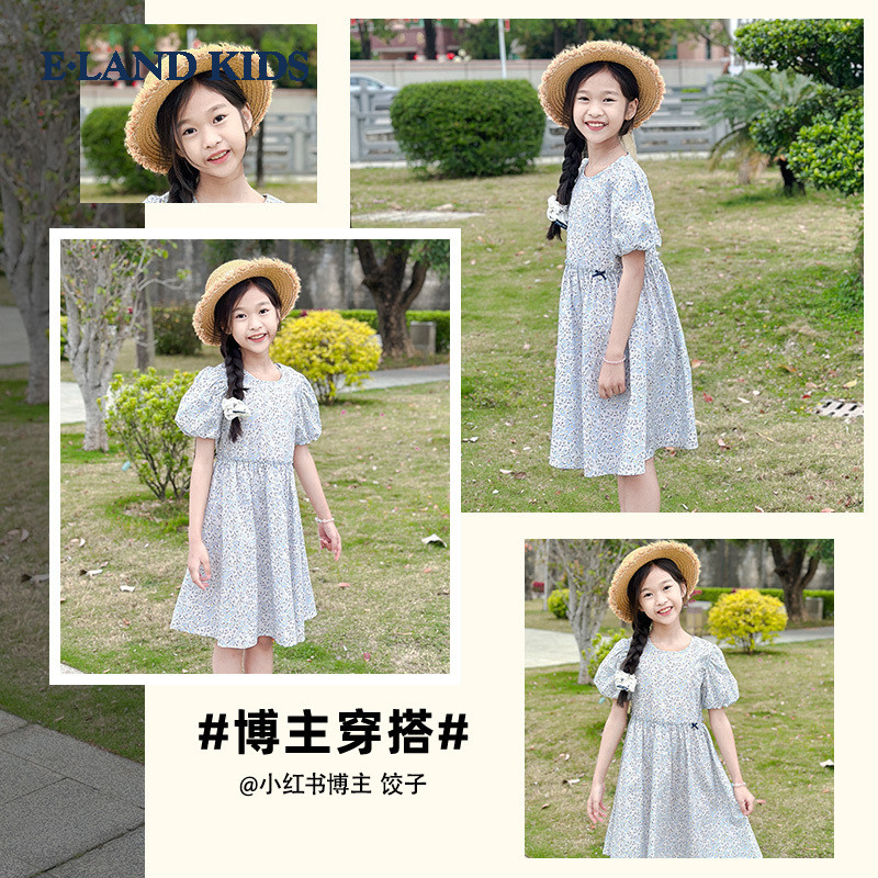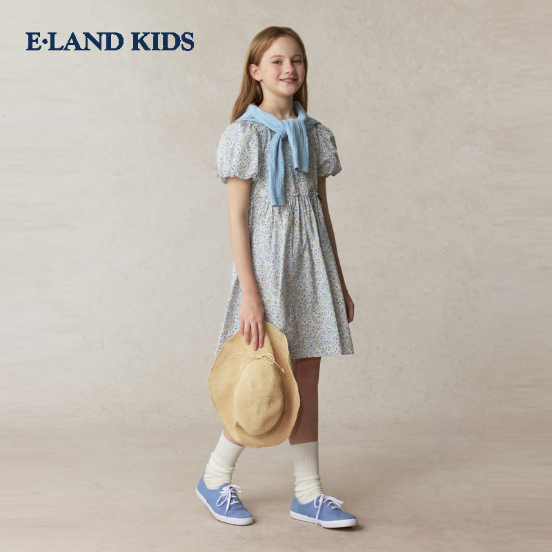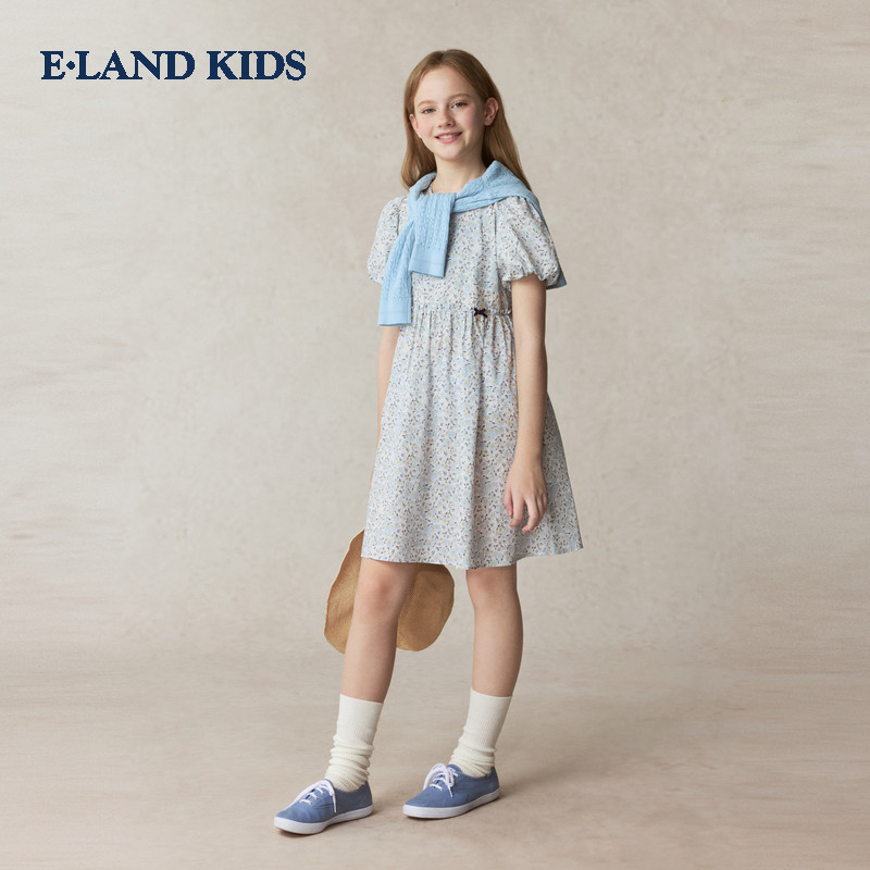 【100%棉】eland kids衣恋童装女童连衣裙25年夏碎花公主开学礼服